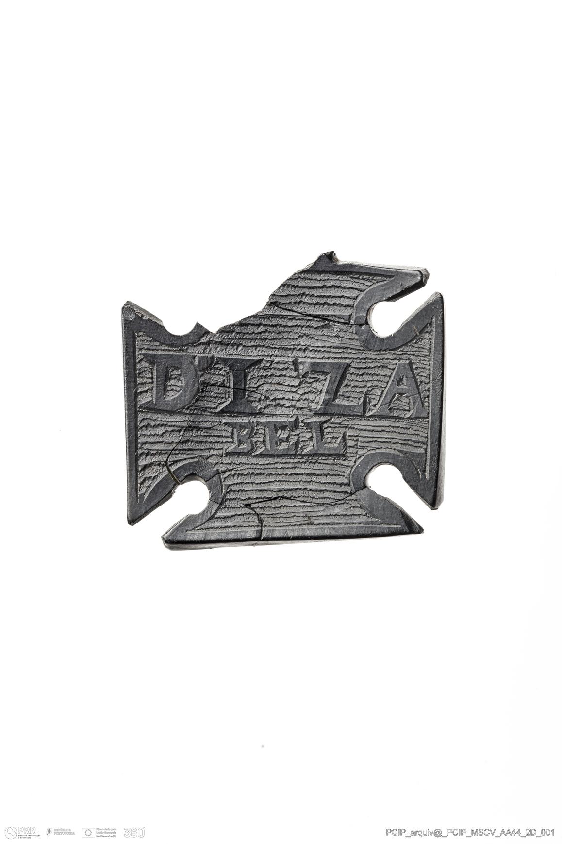 Matéria/Técnica: Azeviche; Cronologia: Século XVI-XVII; Autoria: Desconhecida; Dimensões: Largura: 21mm Comprimento / Profundidade: 19mm; Espessura: 3mm .