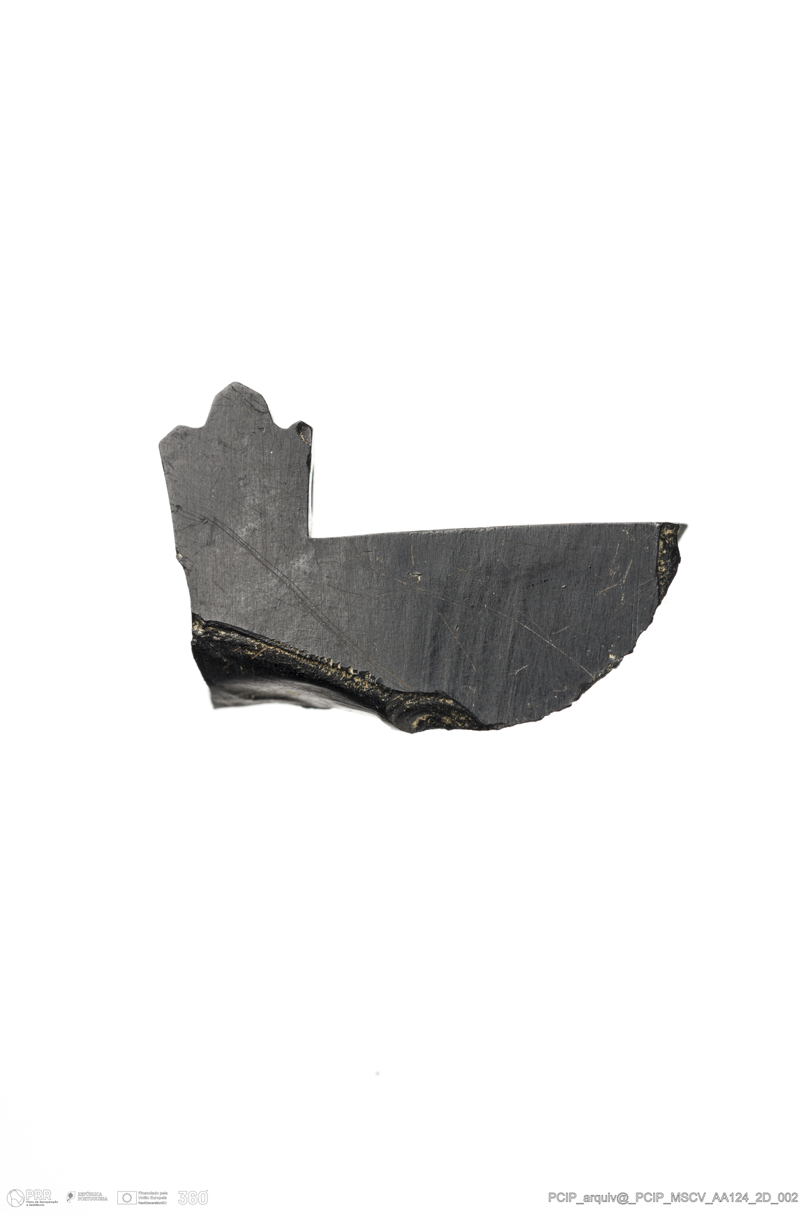Matéria/Técnica: Azeviche; Cronologia: Século XVI- XVII; Autoria: Desconhecida; Dimensões: Comprimento: 24mm; Largura: 14mm; Espessura: 6mm.
