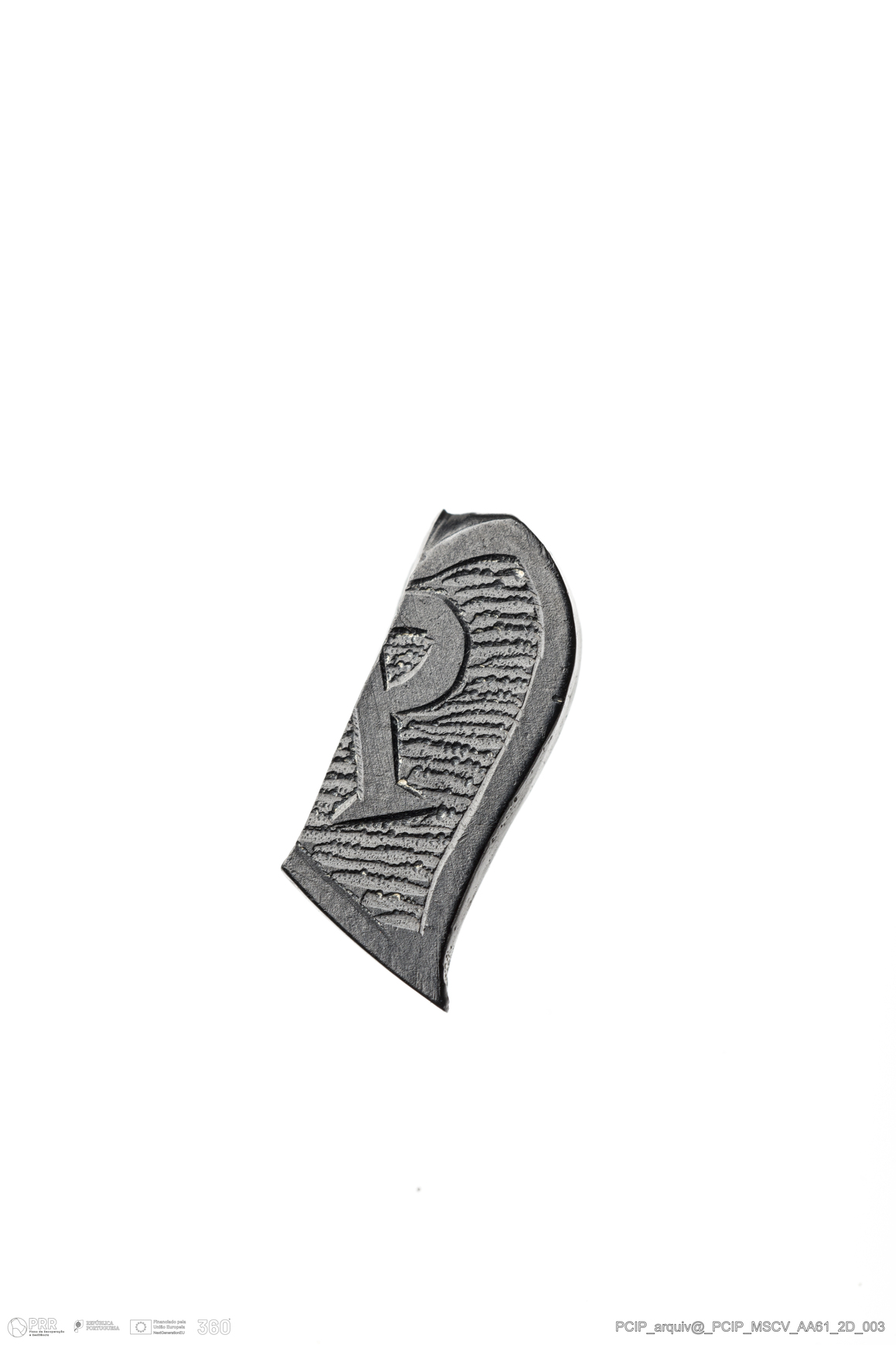 Matéria/Técnica: Azeviche; Cronologia: Século XVI-XVII; Autoria: Desconhecida; Dimensões: Largura: 8mm Comprimento / Profundidade: 15mm; Espessura: 2mm.