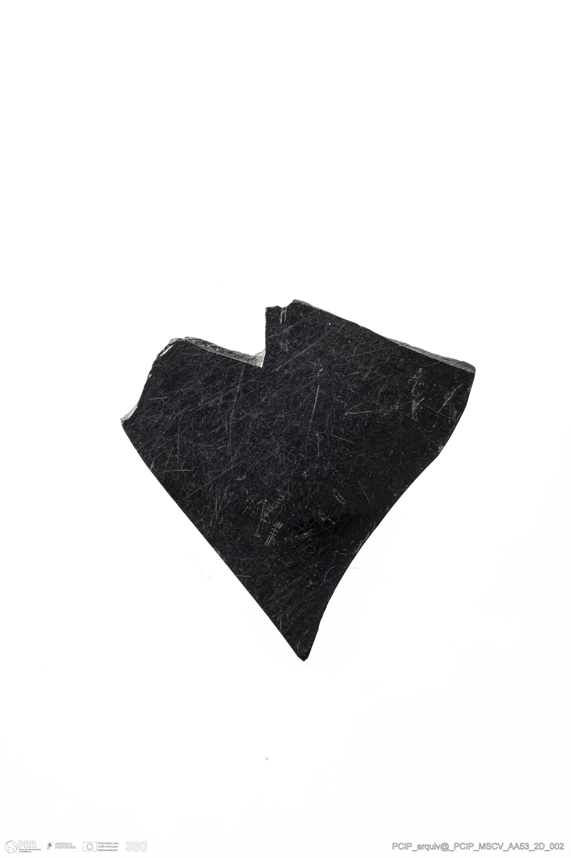 Matéria/Técnica: Azeviche; Cronologia: Século XVI-XVII; Autoria: Desconhecida; Dimensões: Largura: 23mm Altura / Espessura: 2mm Comprimento / Profundidade: 23mm.