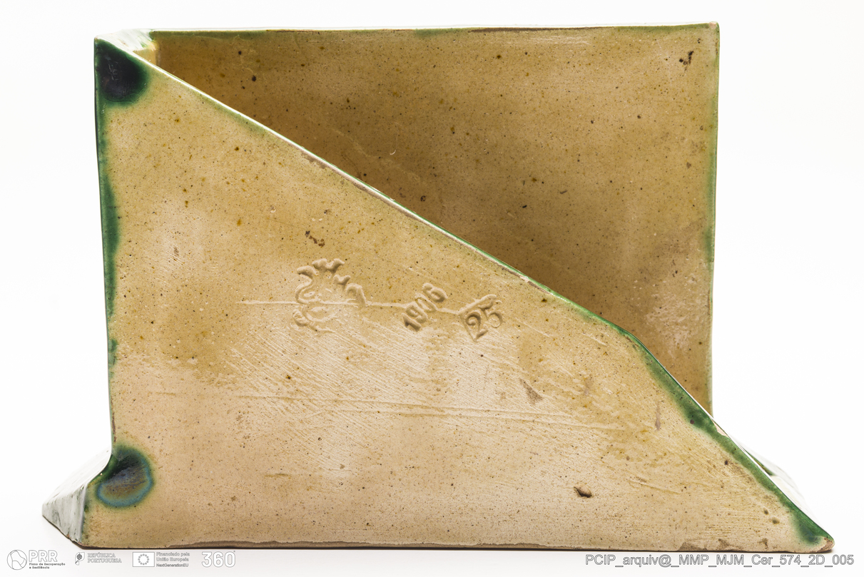 Matéria/Técnica: Barro vidrado; Cronologia: 1906; Autoria: Manuel Gustavo Bordalo Pinheiro; Dimensões: Altura: 13 Comprimento: 22 cm.