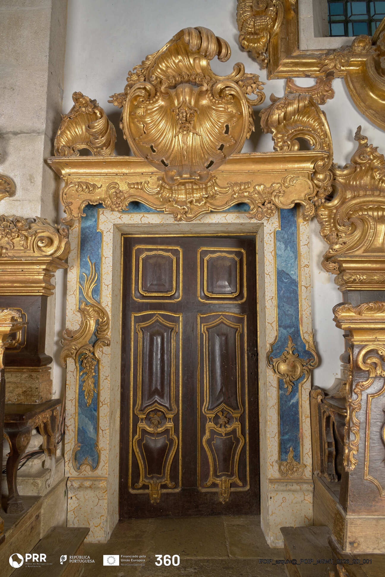 Matéria/Técnica: Madeira entalhada e dourada / Entalhamento e douramento; Cronologia: 1773 - 1776; Autoria: Desconhecido; Dimensões (cm): 210 x 105 x 5.