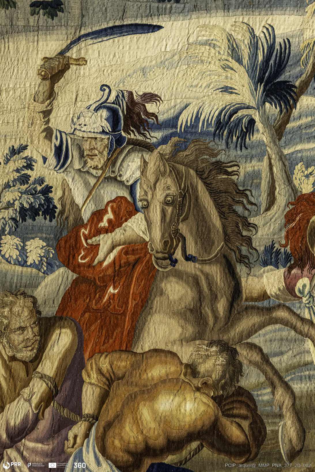 Matéria/Técnica: Tapeçaria de liço; Cronologia: Século XVIII; Autoria: Desconhecida; Dimensões: Altura: 442 cm x Largura: 302 cm.