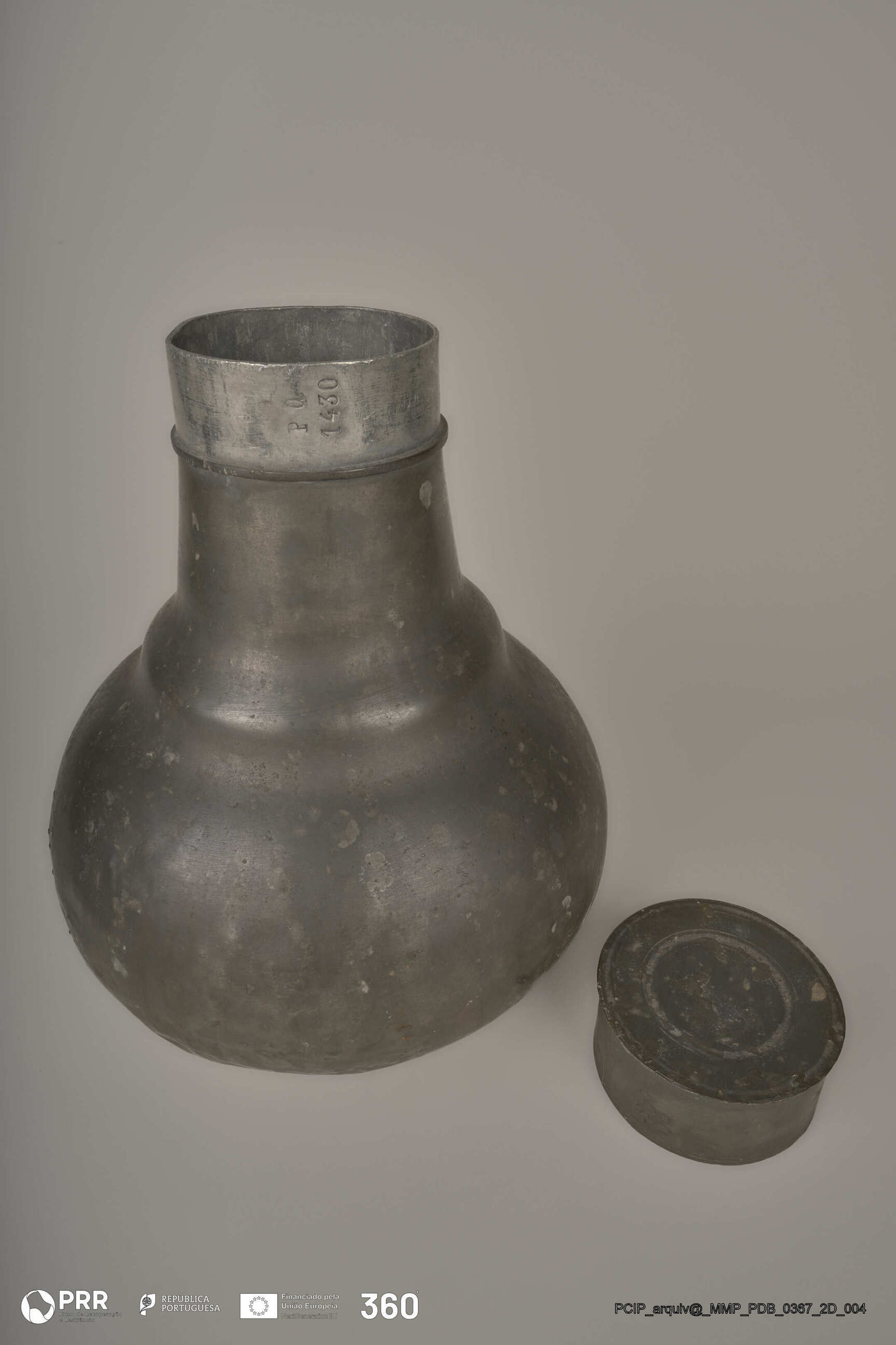 Matéria/Técnica: Desconhecida; Cronologia: Século XVII; Autoria: Desconhecida; Dimensões (cm): Altura: 33,4; Diâmetro: 10,9.