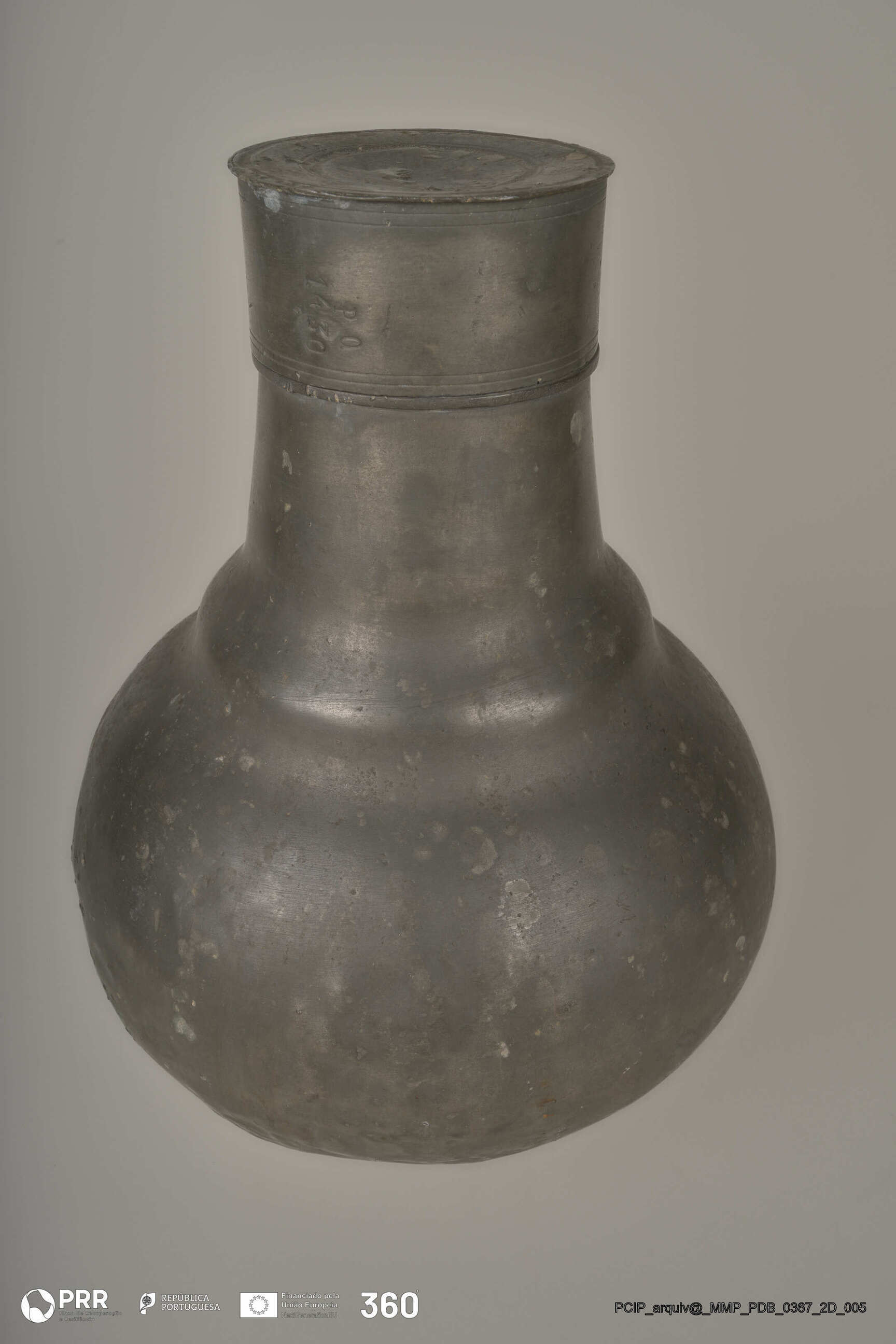 Matéria/Técnica: Desconhecida; Cronologia: Século XVII; Autoria: Desconhecida; Dimensões (cm): Altura: 33,4; Diâmetro: 10,9.