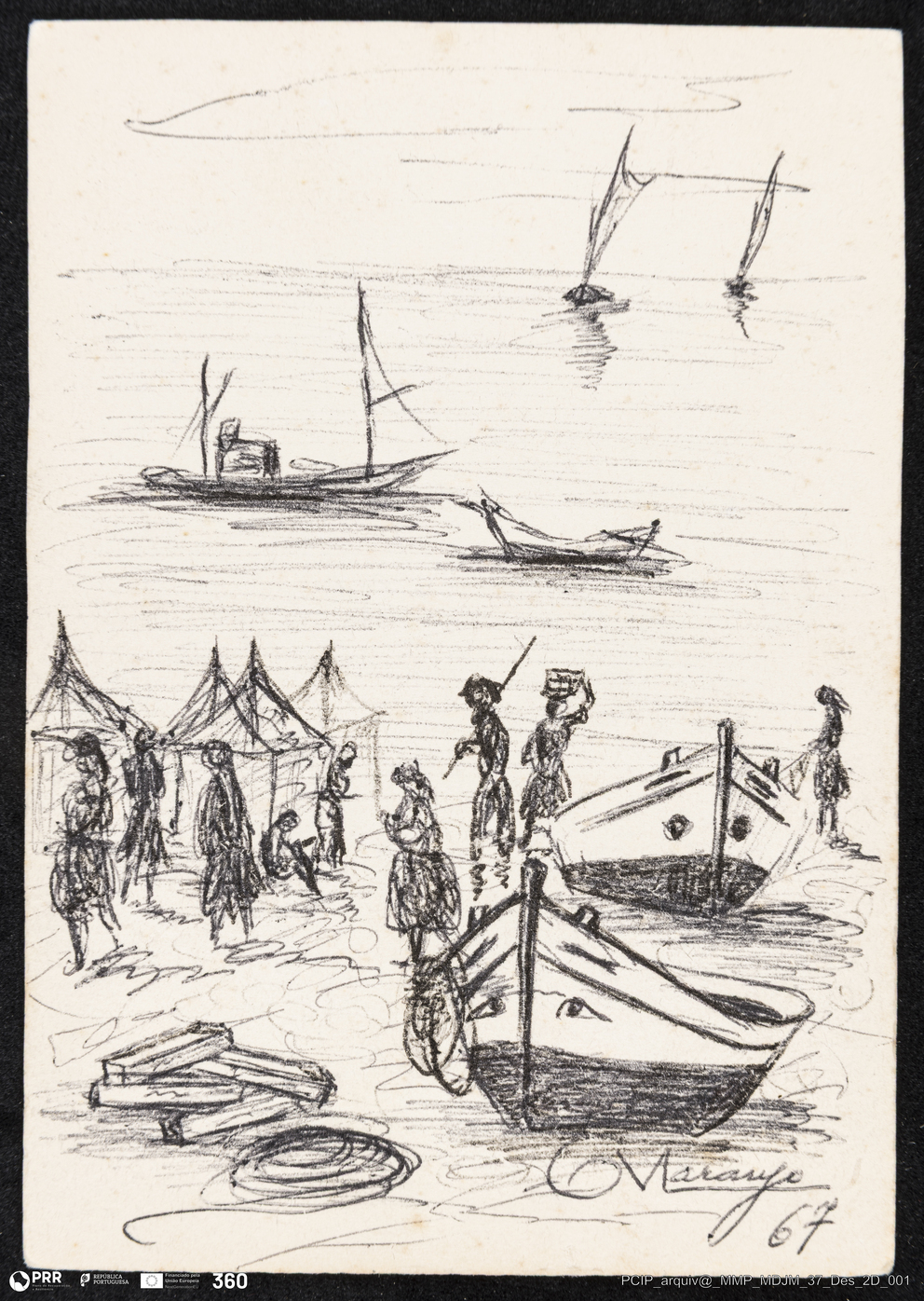 Matéria/Técnica: Tinta sobre cartolina; Cronologia: 1967; Autoria: António Vitorino Laranjo; Dimensões: Altura: 15 cm x Largura: 10,5 cm.