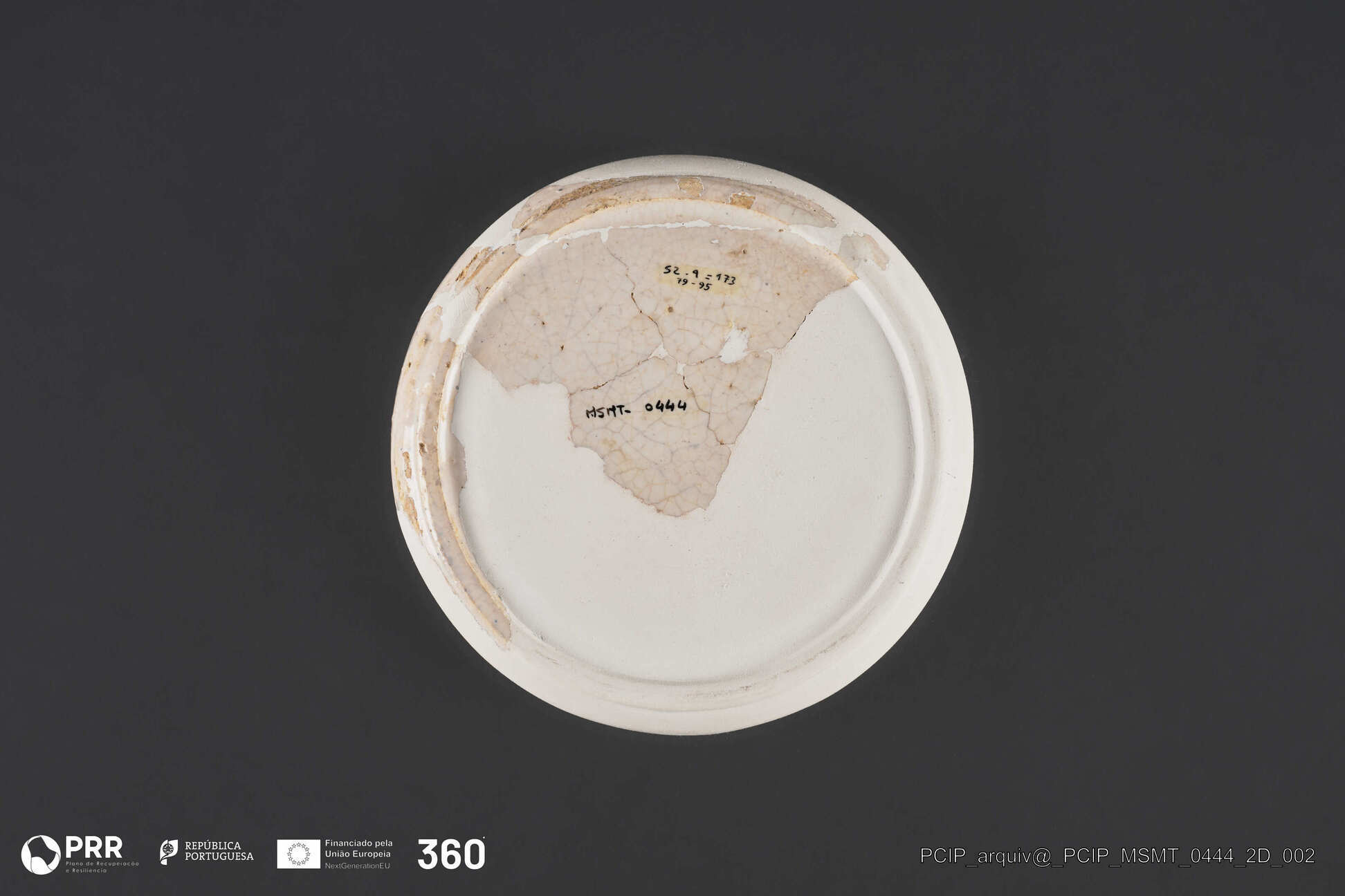 Matéria/Técnica: Cerâmica vidrada,pigmentos / Pintura; Cronologia: Séc. XVIII; Autoria: Desconhecido; Dimensões (cm): 2,1 x 13,5.