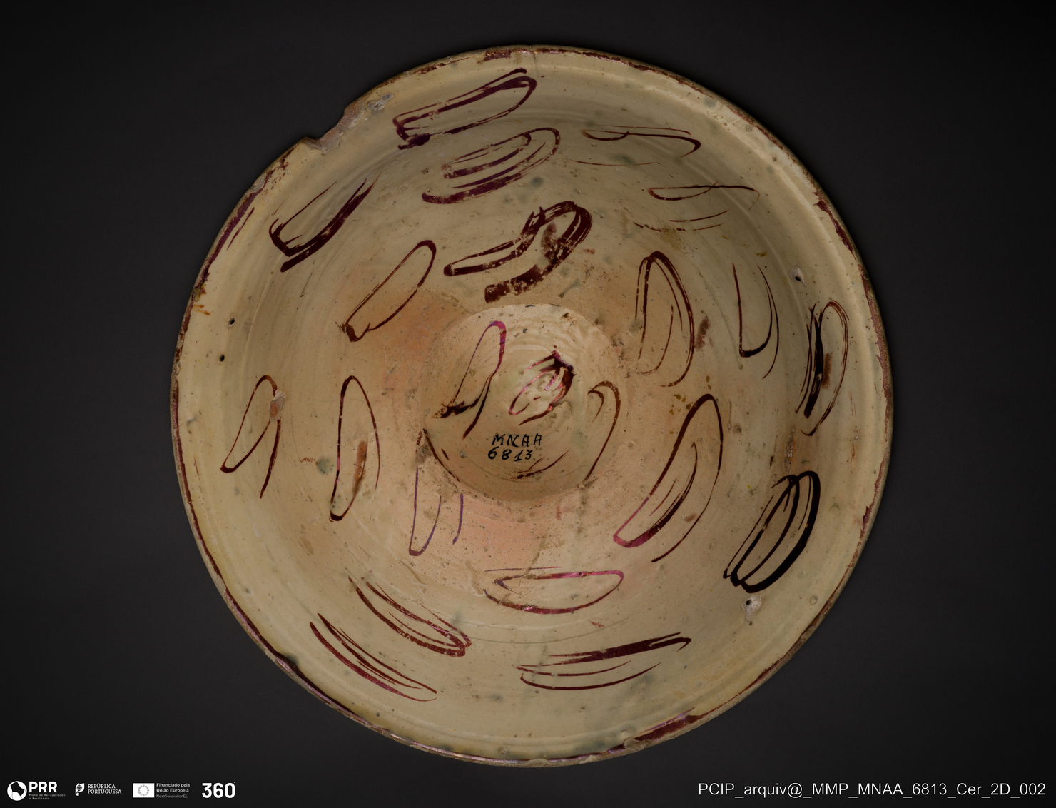 Matéria/Técnica: Rodada e pintada; Cronologia: Séculos XVI-XVII; Autoria: Desconhecida; Dimensões (cm): Altura: 7 x Diâmetro: 38,6.