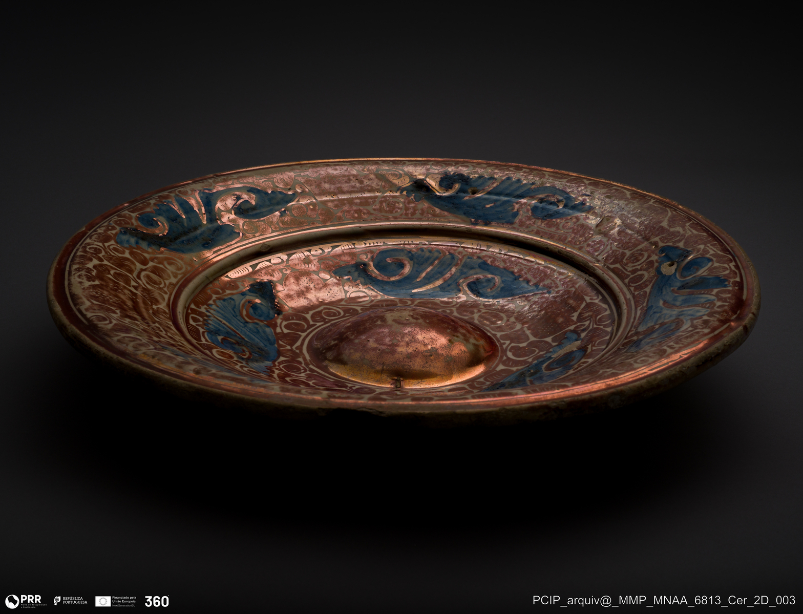 Matéria/Técnica: Rodada e pintada; Cronologia: Séculos XVI-XVII; Autoria: Desconhecida; Dimensões (cm): Altura: 7 x Diâmetro: 38,6.
