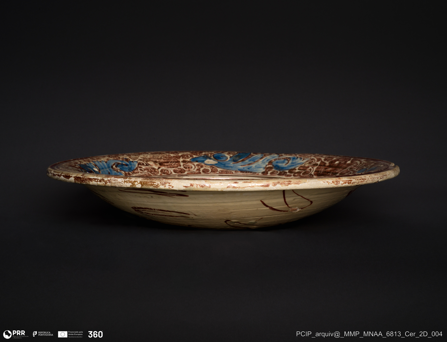 Matéria/Técnica: Rodada e pintada; Cronologia: Séculos XVI-XVII; Autoria: Desconhecida; Dimensões (cm): Altura: 7 x Diâmetro: 38,6.