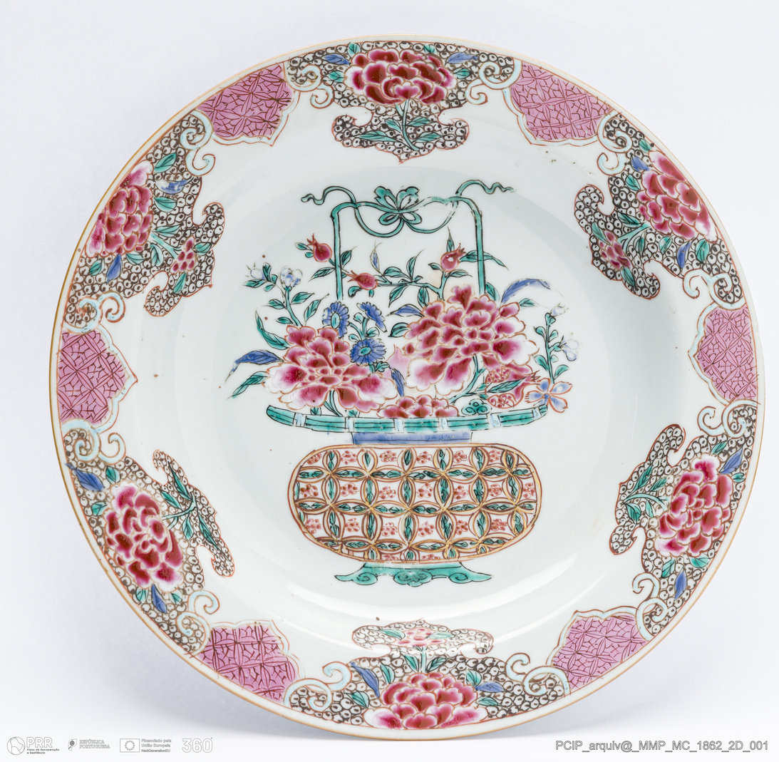 Matéria/Técnica: Porcelana. Modelagem; Cronologia: século XVIII; Autoria: Desconhecido. China; Dimensões (cm): Altura: 1,5; Diâmetro: 22.