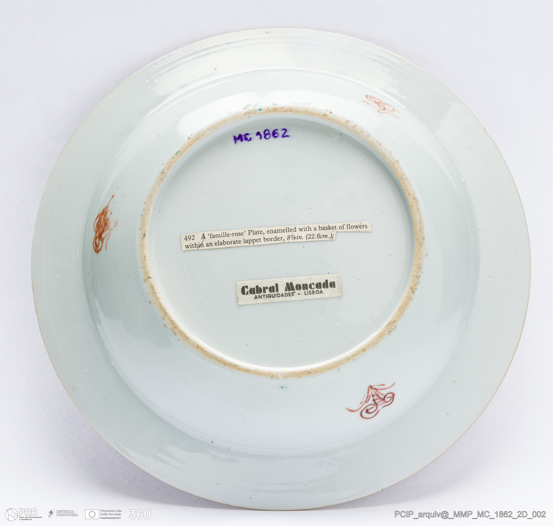 Matéria/Técnica: Porcelana. Modelagem; Cronologia: século XVIII; Autoria: Desconhecido. China; Dimensões (cm): Altura: 1,5; Diâmetro: 22.