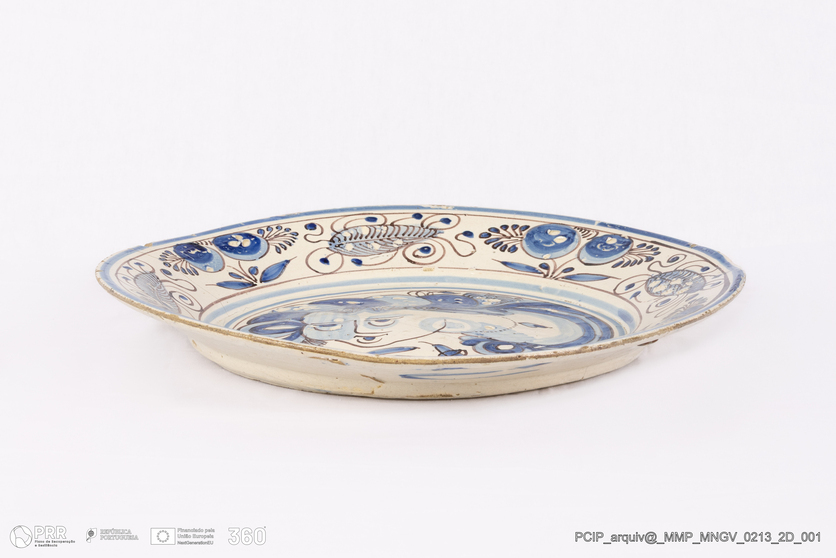 Matéria/Técnica: Peça rodada. Pintura a azul e manganês; Cronologia: Desconhecida; Autoria: Desconhecida; Dimensões: Desconhecidas.