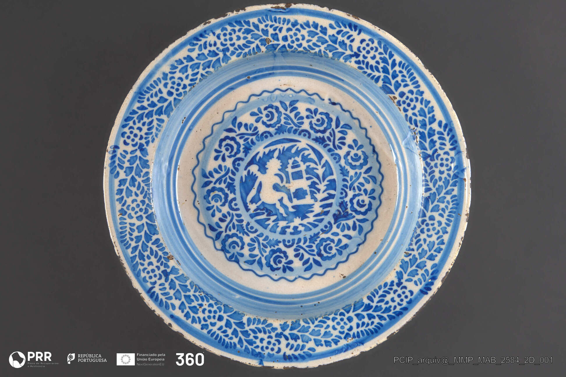 Matéria/Técnica: Rodada, Vidrada, Técnica mista na decoração: pintura e estampilha; Cronologia: Desconhecida; Autoria: Desconhecida; Dimensões: Desconhecidas.