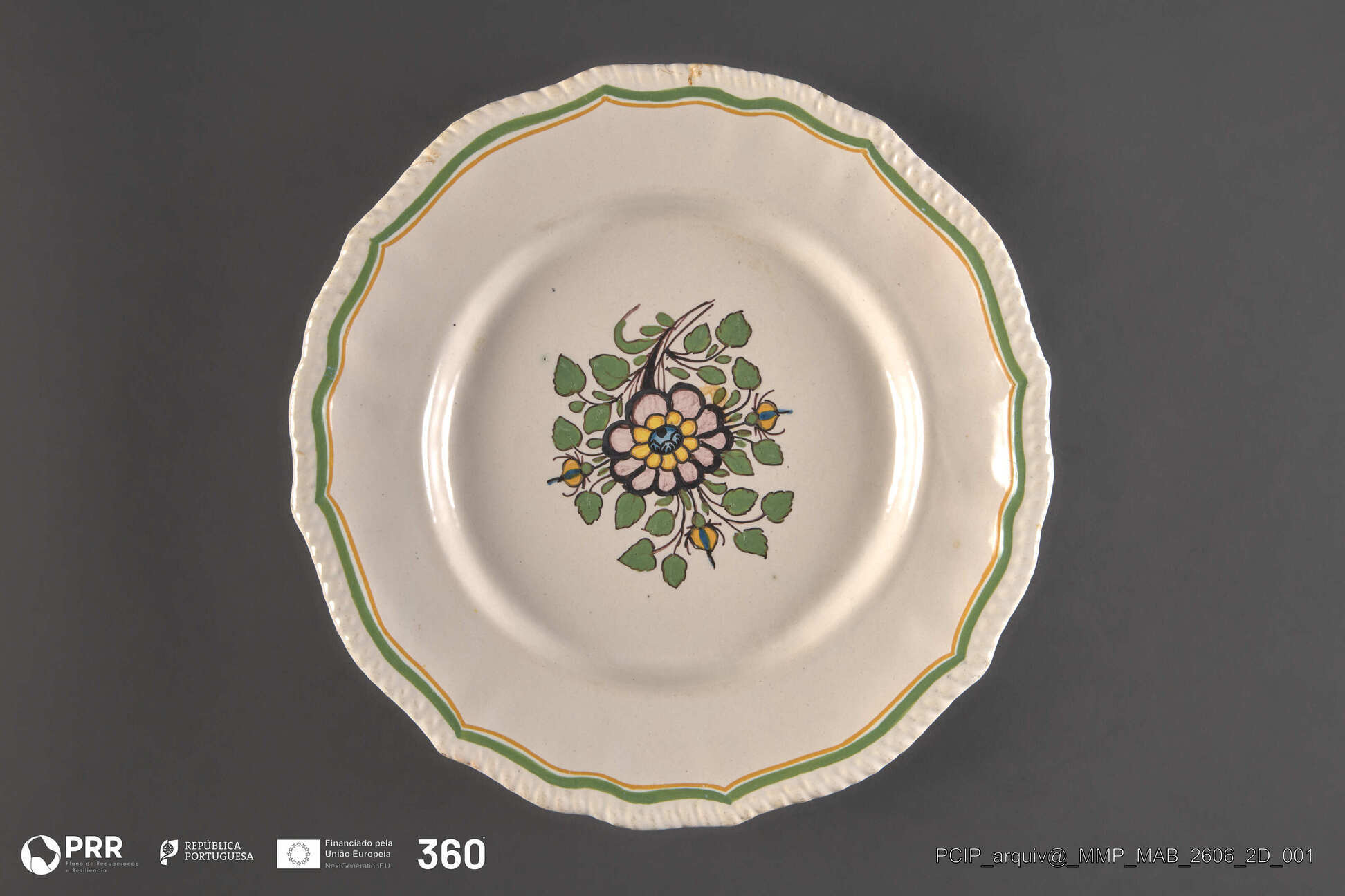 Matéria/Técnica: Faiança moldada e vidrada com decoração pintada a azul, verde, amarelo e vinoso; Cronologia: Desconhecida; Autoria: Desconhecida; Dimensões: Desconhecidas.