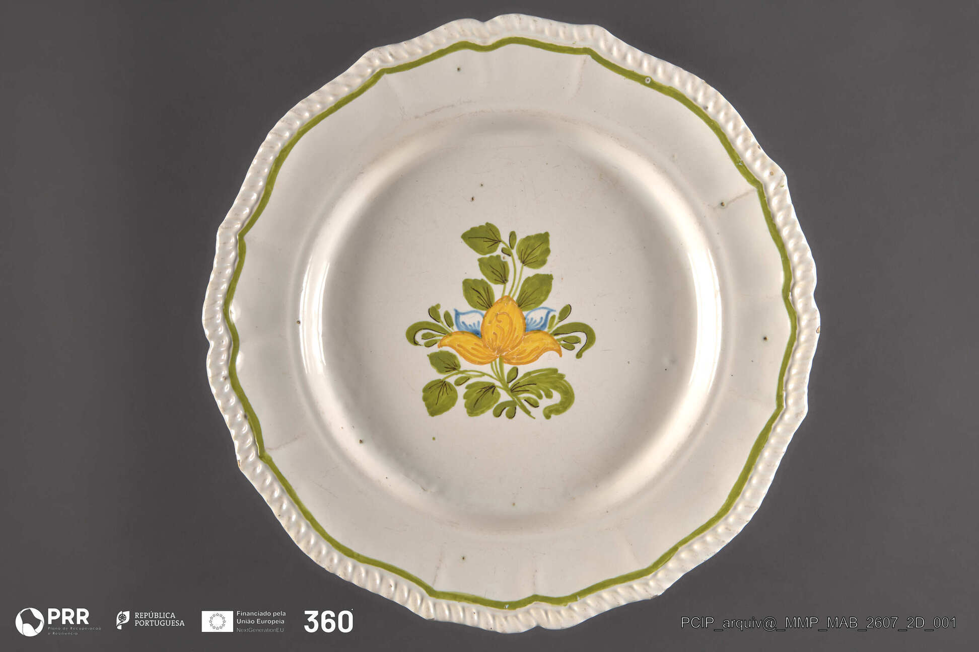 Matéria/Técnica: Faiança, vidrada com decoração pintada a azul, verde, amarelo e vinoso; Cronologia: Desconhecida; Autoria: Desconhecida; Dimensões: Desconhecidas.