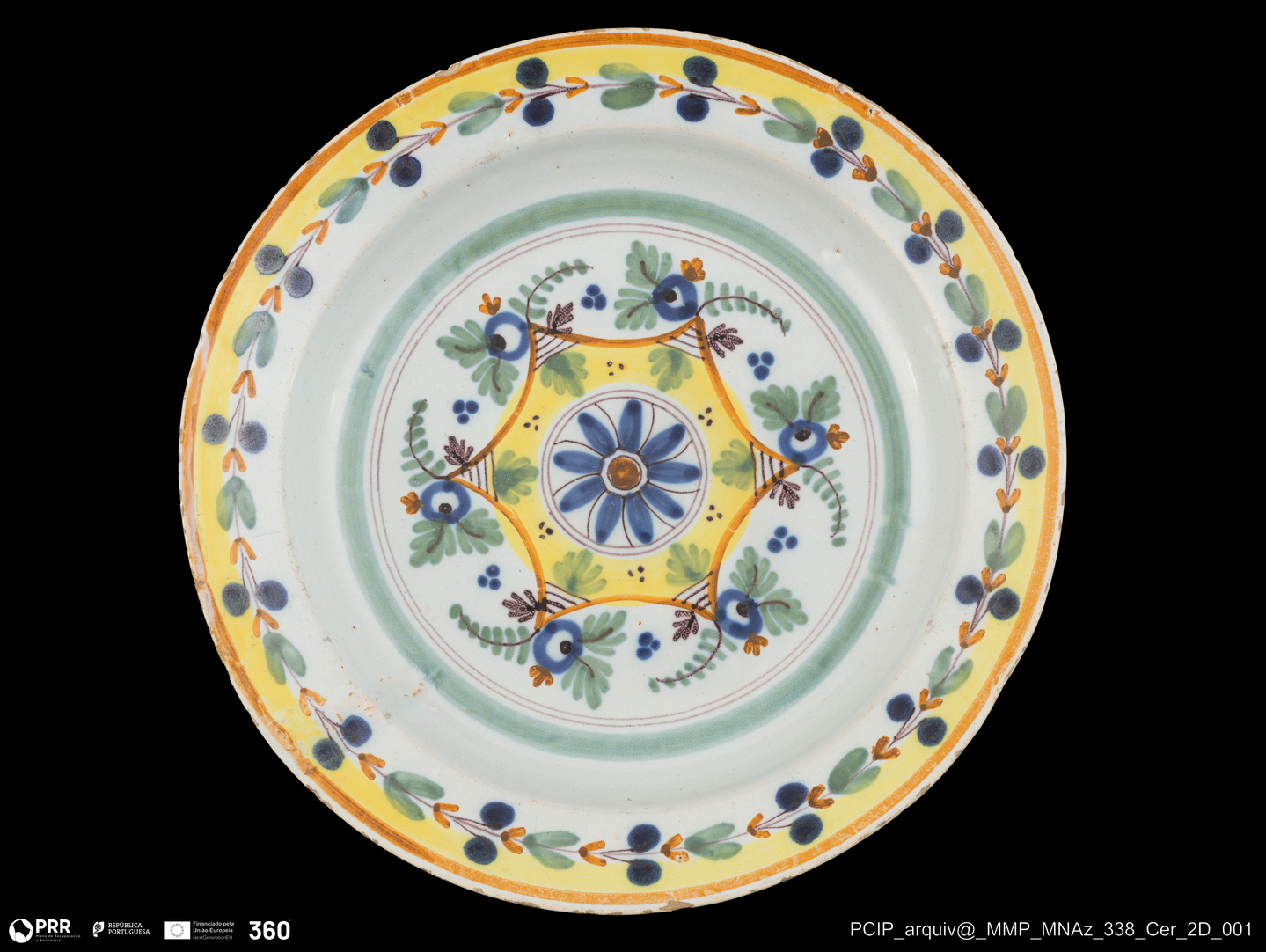 Matéria/ Técnica: Barro; Cronologia: 1795-1808; Autoria: Desconhecida; Dimensões (cm): Altura: 5 cm; Diâmetro: 29.5 cm.