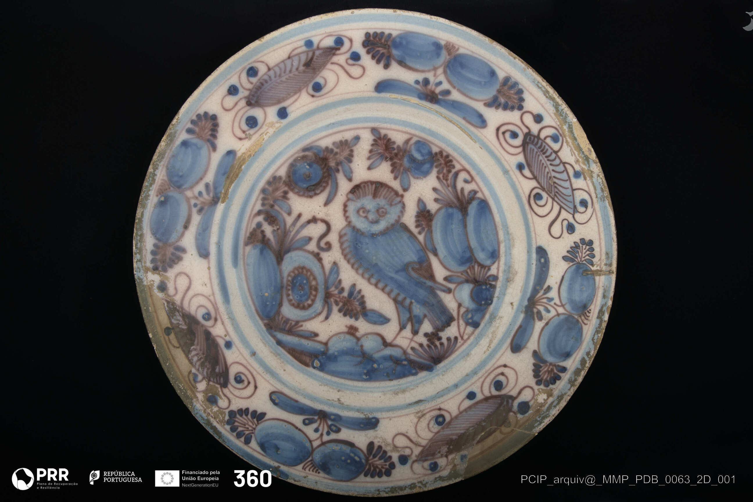 Matéria/Técnica: Desconhecida; Cronologia: Século XVII; Autoria: Desconhecida; Dimensões (cm): Altura: 6,5; Profundidade: 5,6; Espessura: 1; Diâmetro: D. 39,5 D. Base - 25,2.