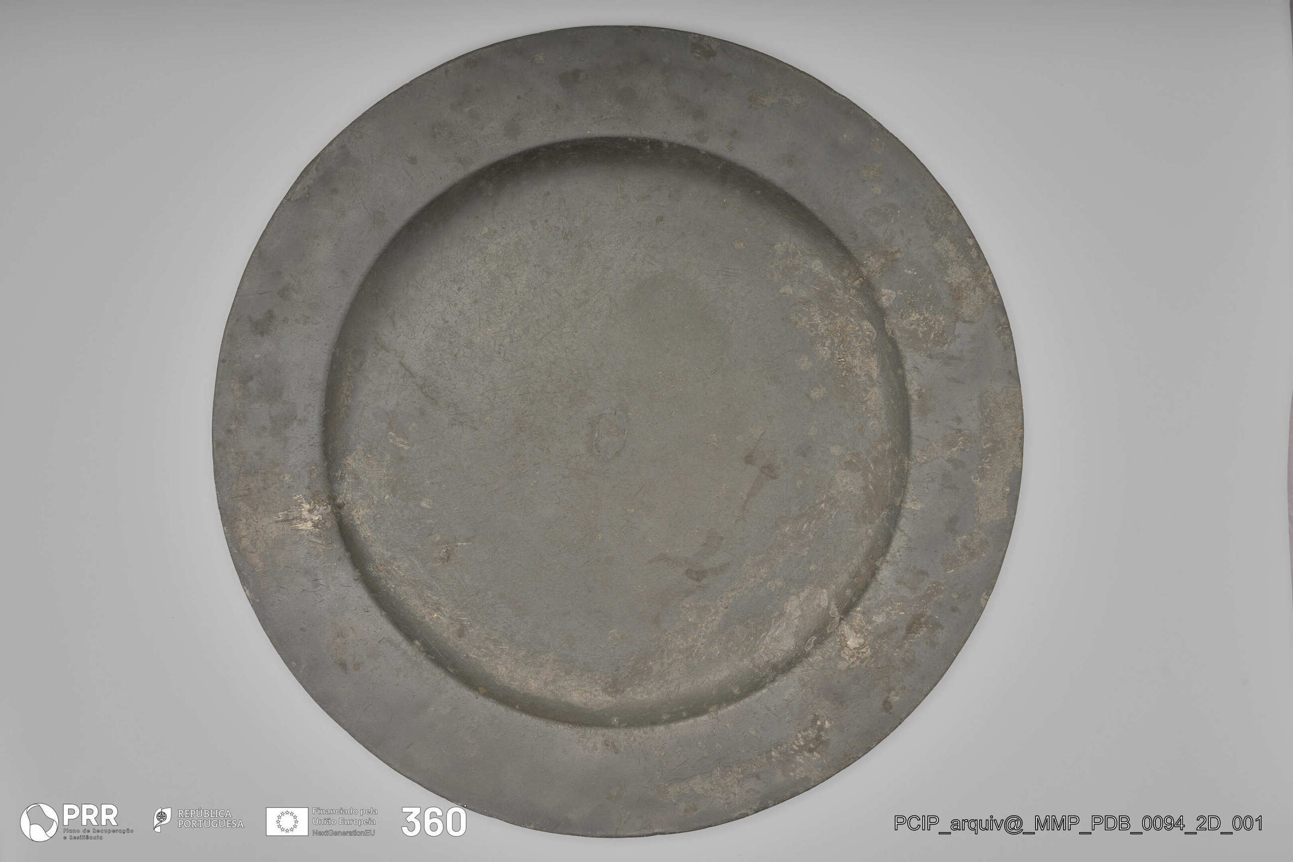 Matéria/Técnica: Desconhecida; Cronologia: Século XVII; Autoria: Desconhecida; Dimensões (cm): Altura: 2,6; Diâmetro: 45,8.
