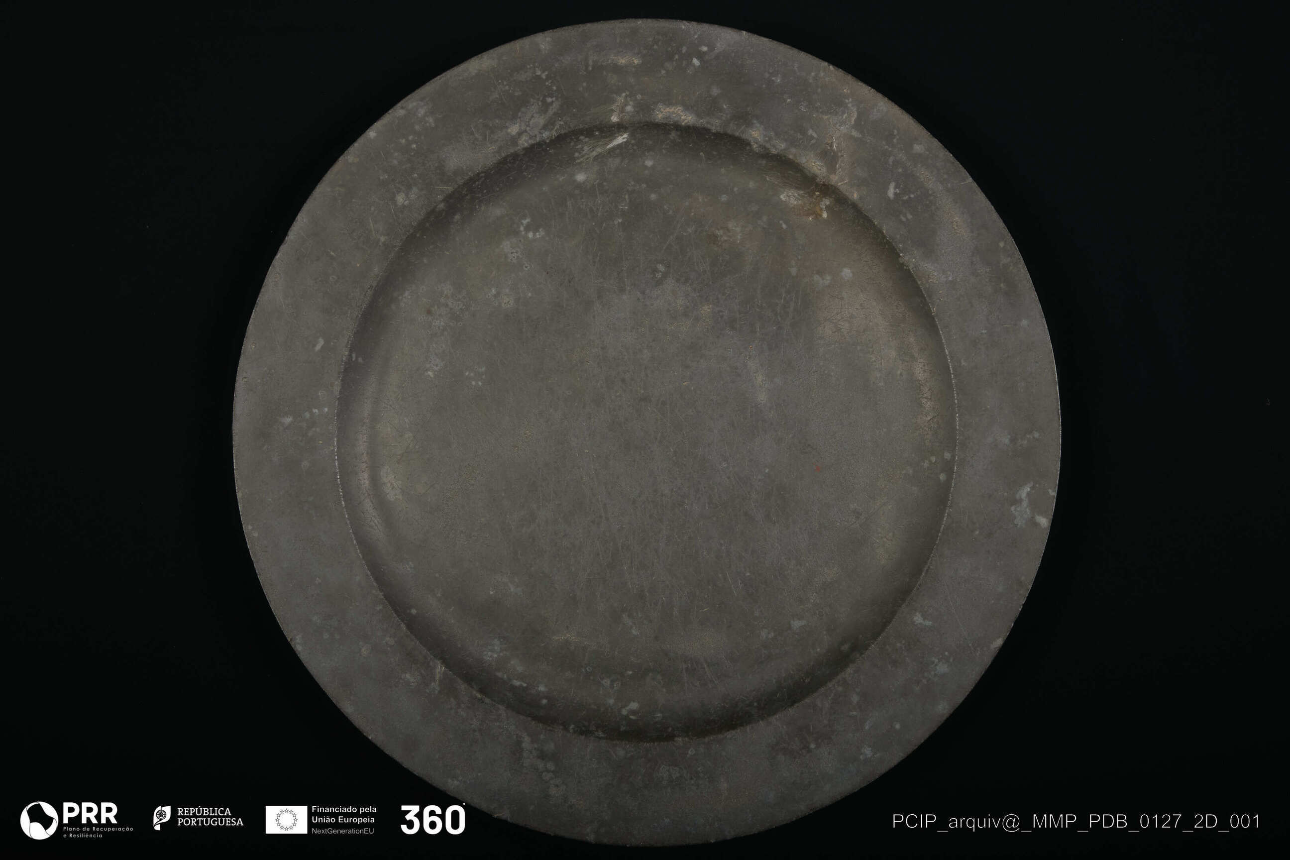 Matéria/Técnica: Desconhecida; Cronologia: Século XVII; Autoria: Desconhecida; Dimensões (cm): Altura: 3,5; Diâmetro: 55,8.