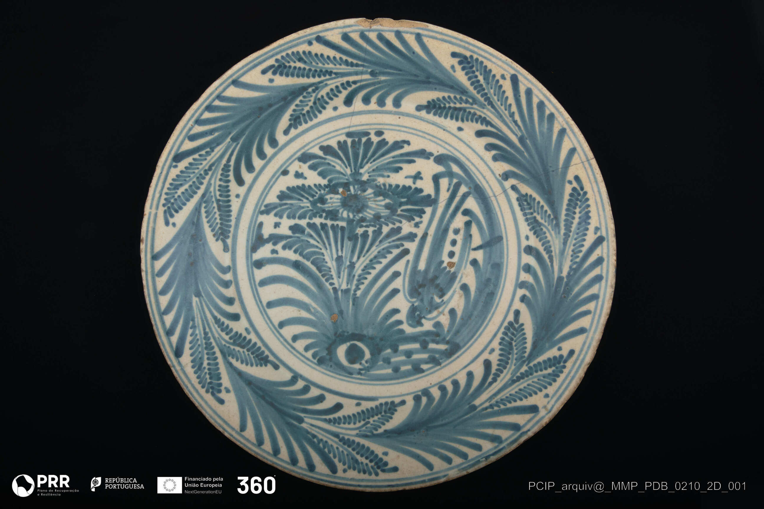 Matéria/Técnica: Desconhecida; Cronologia: Século XVII; Autoria: Desconhecida; Dimensões (cm): Altura: 7,8; Profundidade: 7; Espessura: 1; Diâmetro: 37,1 Base - 14,6.