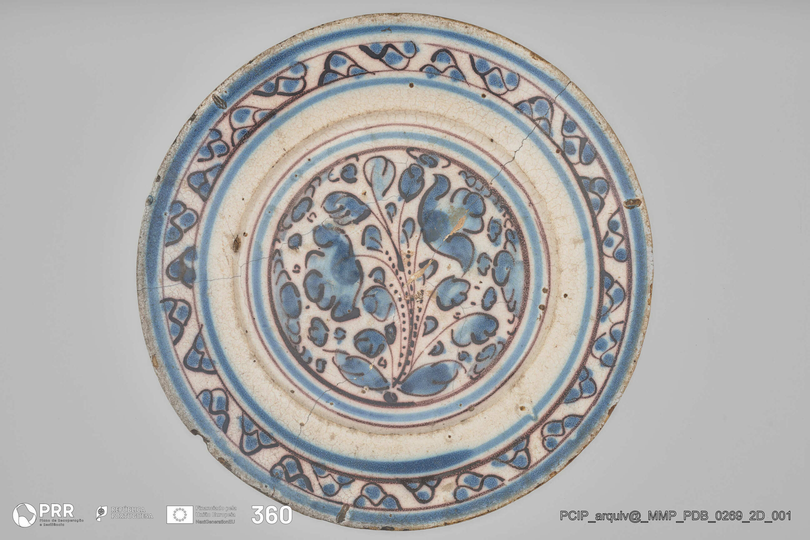 Matéria/Técnica: Desconhecida; Cronologia: Século XVIII; Autoria: Desconhecida; Dimensões (cm): Altura: 4,5; Profundidade: 3,9; Espessura: 1; Diâmetro: 30,1 Base - 18,2.