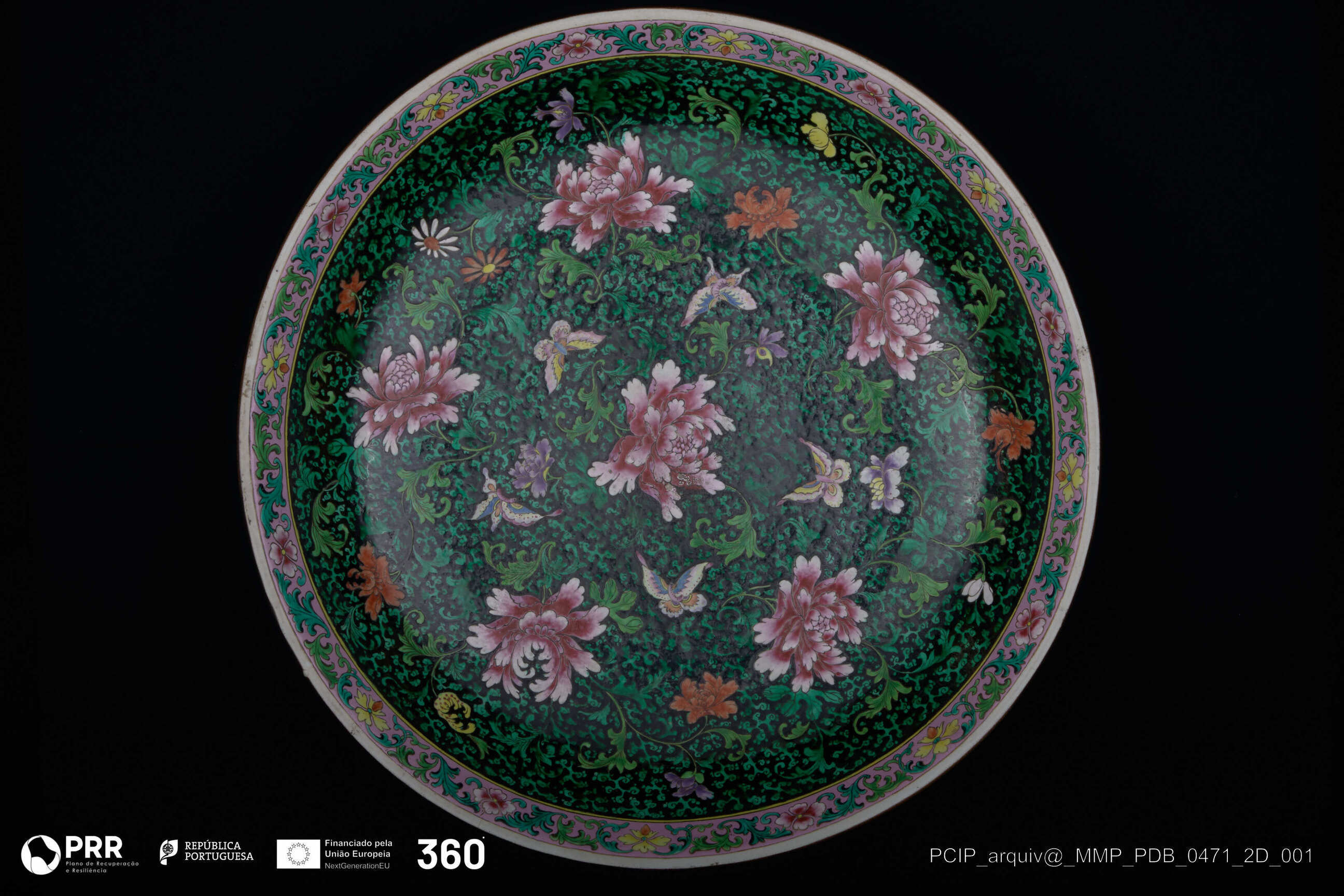Matéria/Técnica: Desconhecida; Cronologia: Século XVIII; Autoria: Desconhecida; Dimensões (cm): Altura: 11; Profundidade: 9,1; Esp. 1; Diâmetro: D. 61,7 Base - 41,8.
