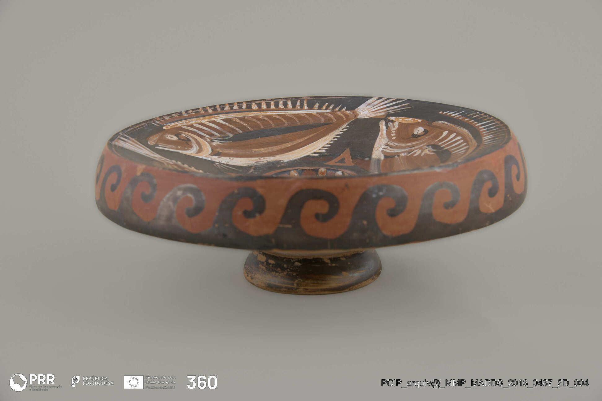 Matéria/Técnica: Cerâmica; Cronologia: Meados do século IV a.C; Autoria: Desconhecida; Dimensões (cm): 7 x 20 x 20.