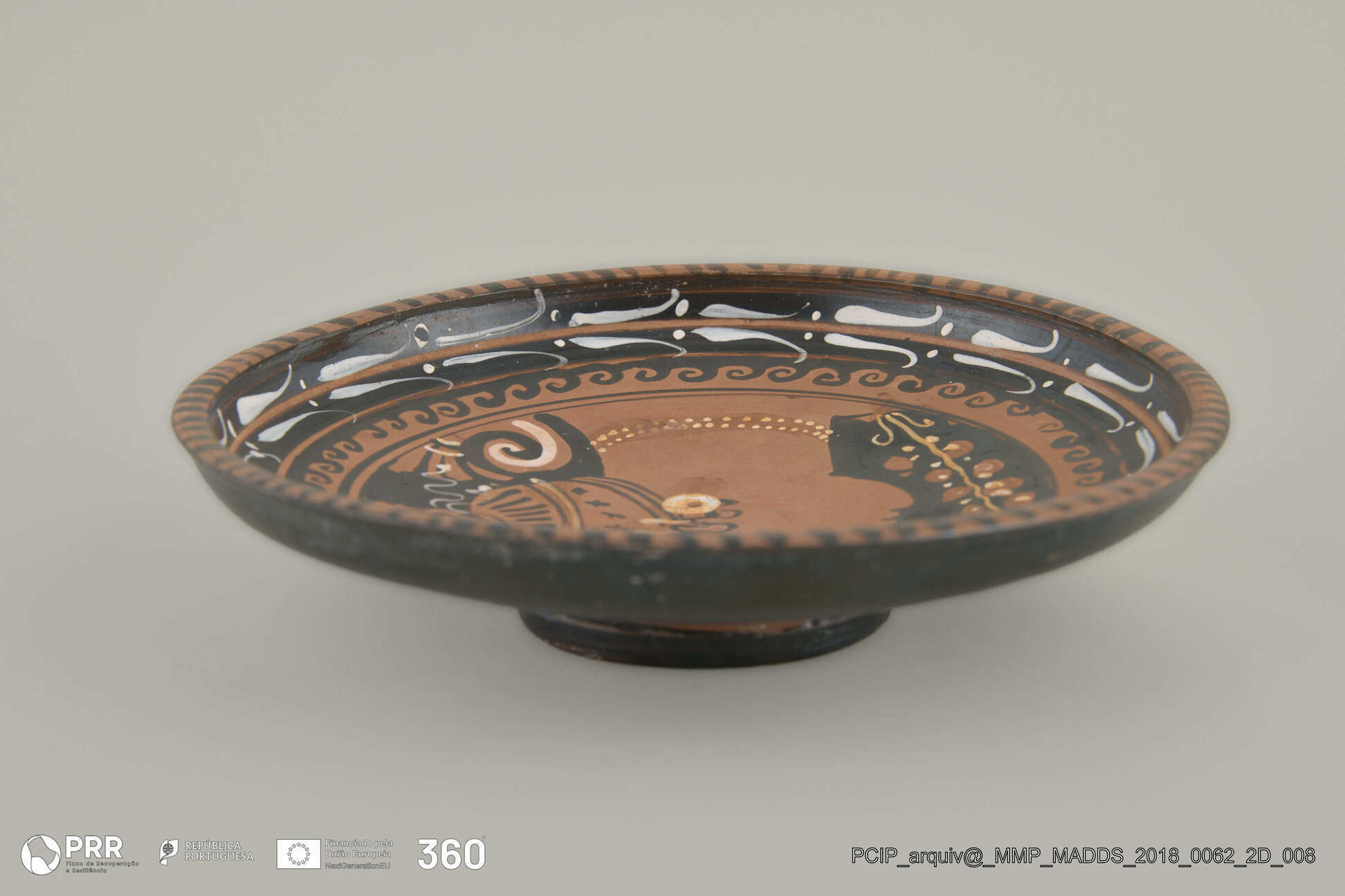Matéria/Técnica: Cerâmica; Cronologia: Cerca de 340 a.C; Autoria: Desconhecida; Dimensões (cm): 4 x 16 x 16.