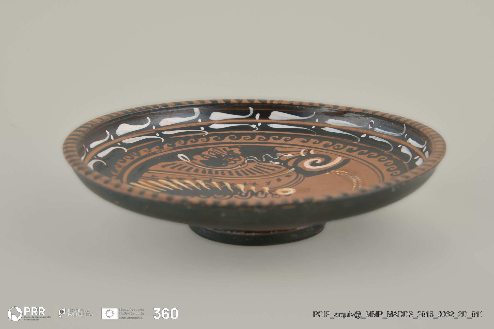 Matéria/Técnica: Cerâmica; Cronologia: Cerca de 340 a.C; Autoria: Desconhecida; Dimensões (cm): 4 x 16 x 16.