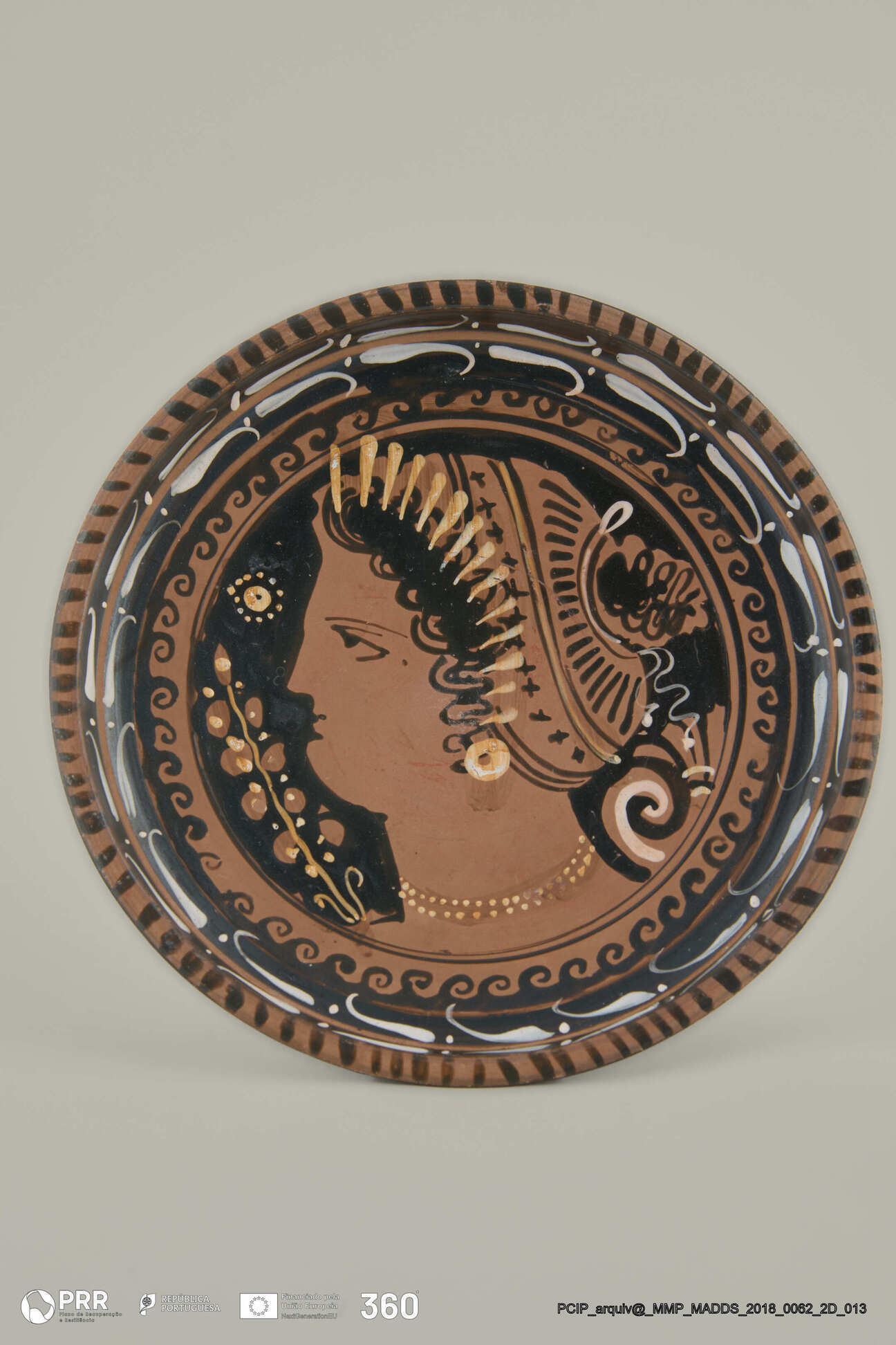 Matéria/Técnica: Cerâmica; Cronologia: Cerca de 340 a.C; Autoria: Desconhecida; Dimensões (cm): 4 x 16 x 16.