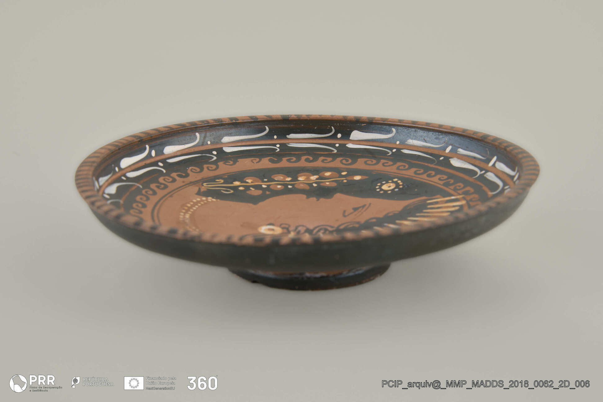 Matéria/Técnica: Cerâmica; Cronologia: Cerca de 340 a.C; Autoria: Desconhecida; Dimensões (cm): 4 x 16 x 16.