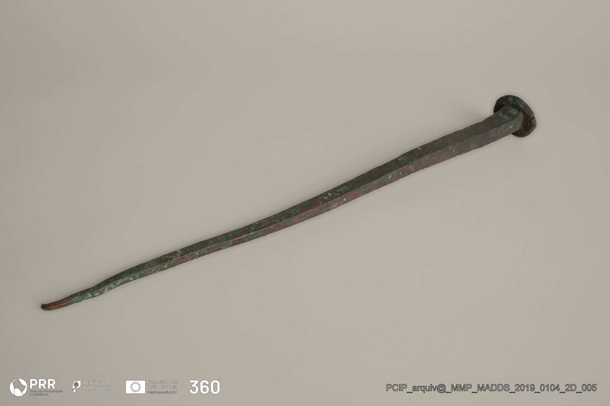 Matéria/Técnica: Bronze; Cronologia: Romano; Autoria: Desconhecida; Dimensões (cm): 54 x 5 x 3.