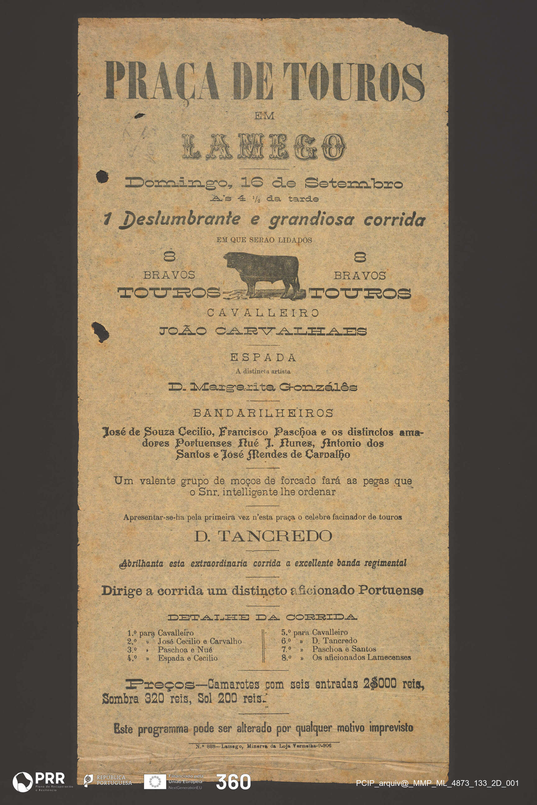 Documento simples. ML_4873_133_2D_001 - Programa. Praça de Touros em Lamego