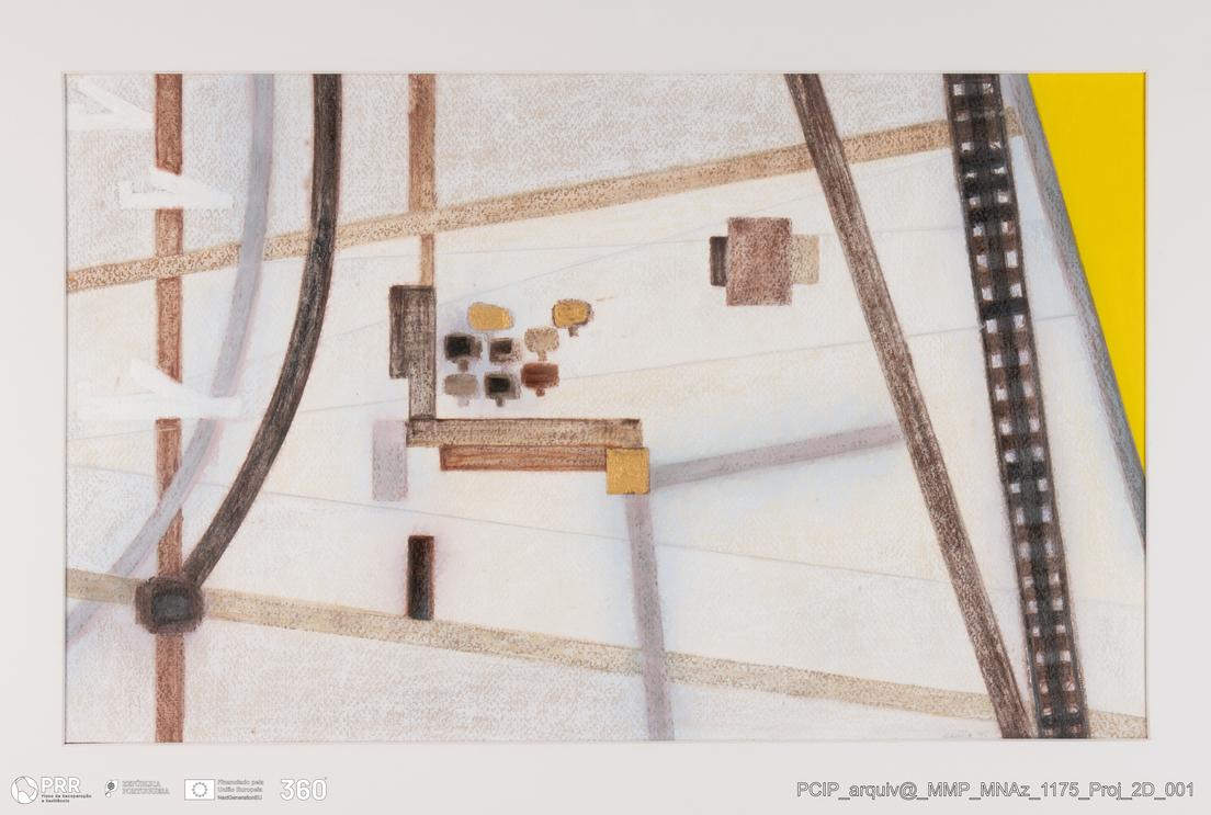 Matéria/ Técnica: Guache; lápis de cera; grafite; purpurina; Cronologia: 1995; Autoria: Sousa, Cecília de (Lisboa, 1937 - ); Dimensões (cm): Altura: 30 cm; Largura: 48,8 cm.