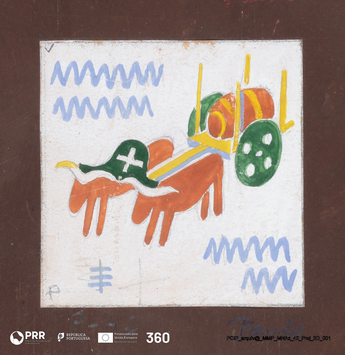 Matéria/Técnica: Guache; Cronologia: 1937-1942; Autoria: Ferreira, Paulo / Paolo (Lisboa, 1911 - Cascais, 1999); Dimensões: Altura: 6,5 cm x Largura: 6,5 cm.