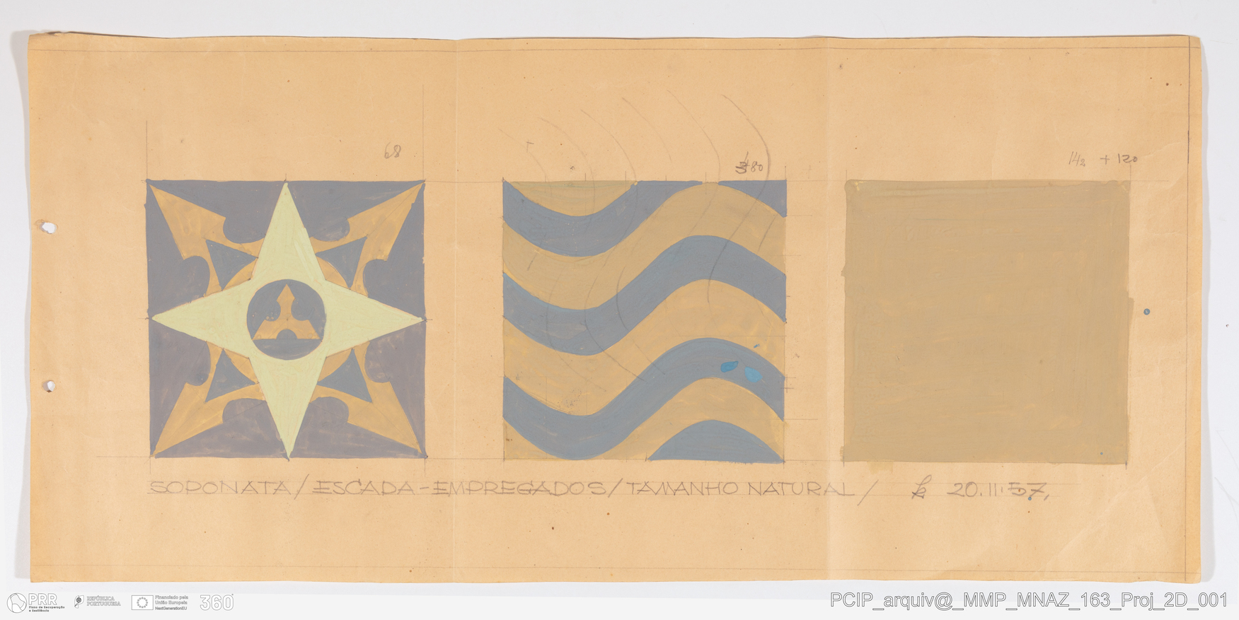 Matéria/Técnica: Grafite e guache sobre papel; Cronologia: 1957; Autoria: Kradolfer, Fred (Zurique, 1903 - Lisboa, 1968); Dimensões: Altura: 27,2 cm x Largura: 58,1 cm.