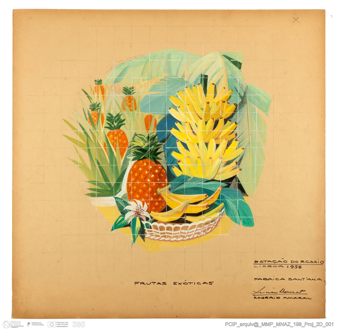 Matéria/Técnica: Guache; Cronologia: 1958; Autoria: Amaral, Rogério (Lisboa, 1917 - ); Donnat, Lucien; Dimensões: Altura: 49,9 cm x Largura: 49,8 cm.