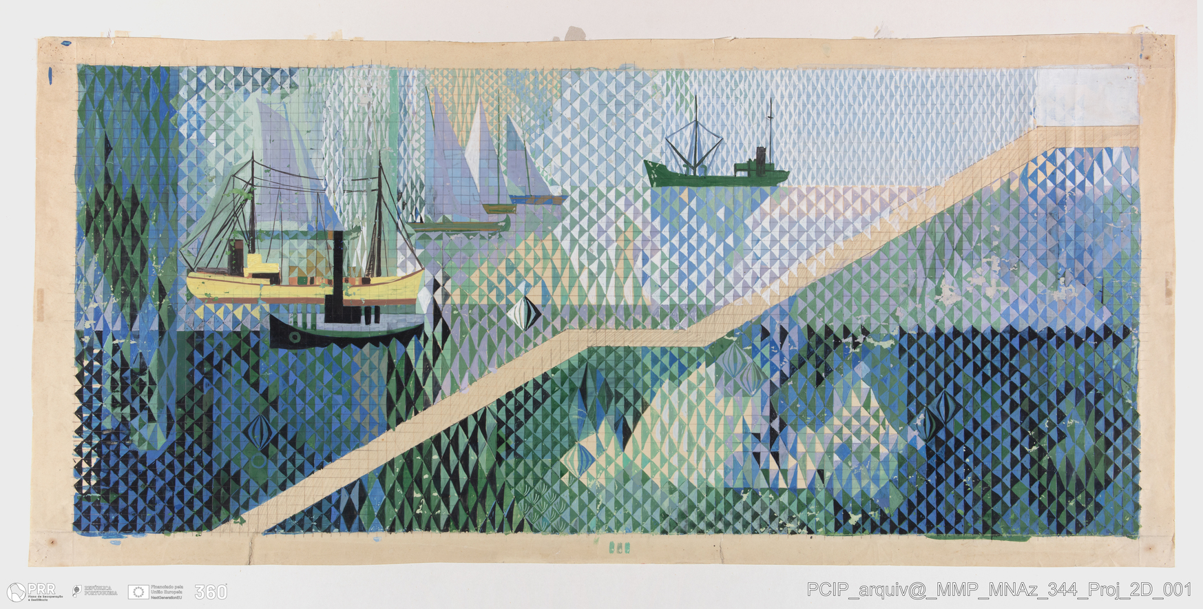 Matéria/ Técnica: Papel; Cronologia: 1956-1958; Autoria: Keil, Maria (Silves, 1914 - Lisboa 2012); Dimensões (cm): Altura: 35,5 cm; Largura: 81 cm.