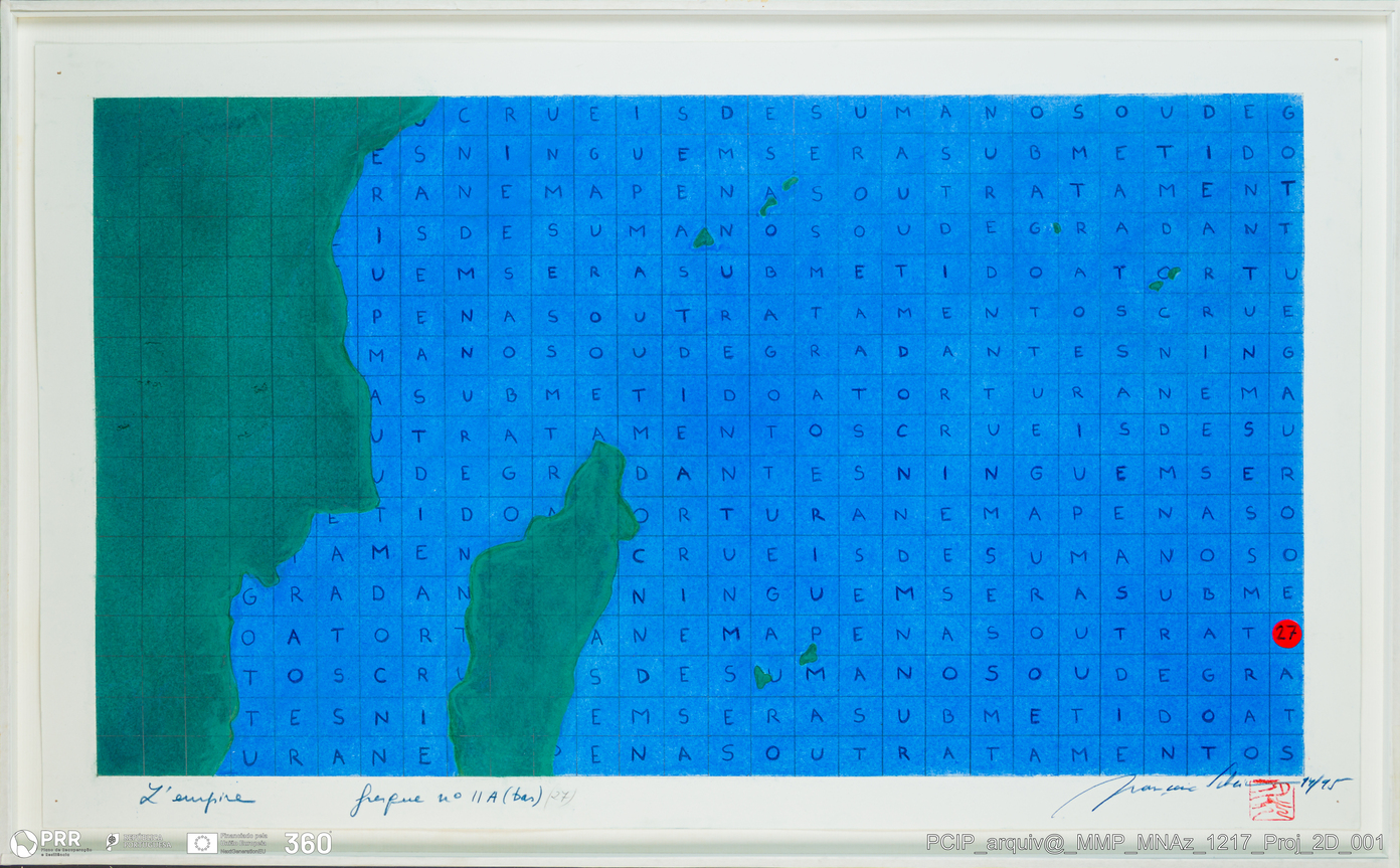 Matéria/ Técnica: Desconhecida; Cronologia: 1994-1995; Autoria: Schein, Françoise (Bélgica, 1953 - ); Dimensões (cm): Altura: 40,5; Largura: 62; Espessura: 1,6.