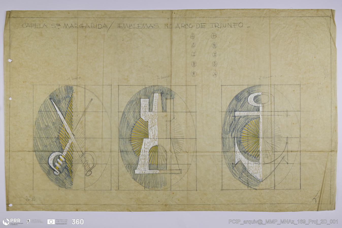 Projeto - Projeto para decoração das colunas do Arco Triunfal da Capela do Aquartelamento de Santa Margarida.