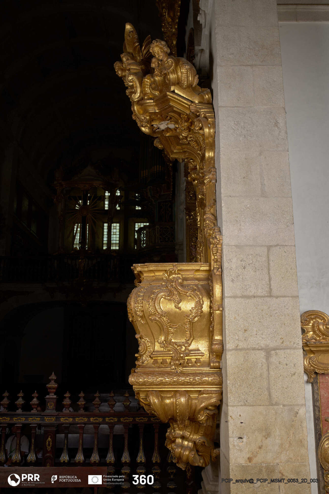 Matéria/Técnica: Madeira entalhada e dourada / Entalhamento e douramento; Cronologia: 1757 - 1758; Autoria: André Soares; Dimensões (cm): 530 x 220 x 120.