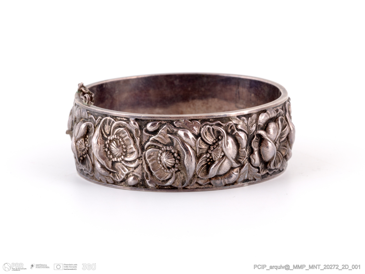 Matéria/Técnica: Prata.; Cronologia: 1900 - 1910; Autoria: Desconhecida; Dimensões (cm): Largura: 2,5 cm; Diâmetro: Maior: 7,2 cm; Menor: 6,5 cm; Peso 41g .