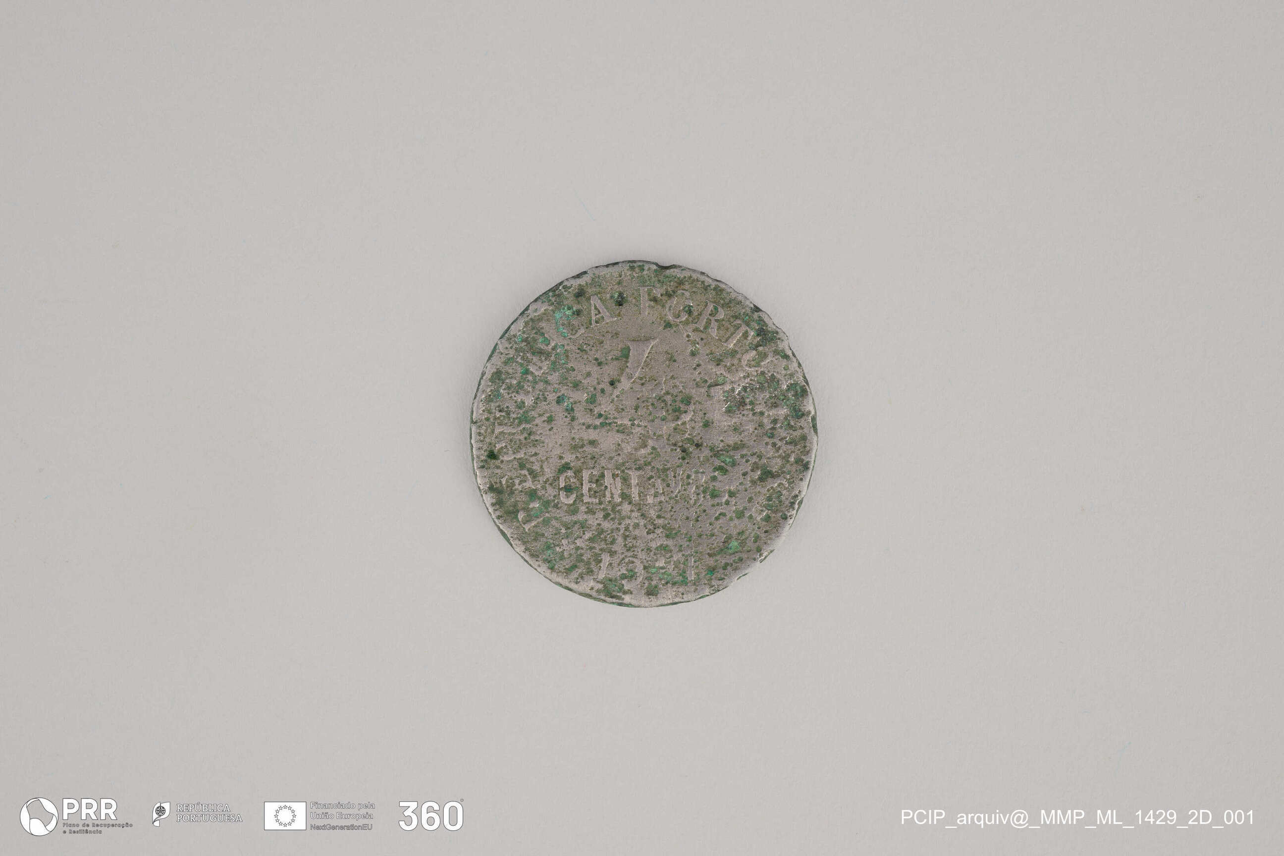 Matéria/Técnica: Cunhagem; Cronologia: Século XX; Autoria: Desconhecida; Dimensões (cm): Diâmetro: 2,5.