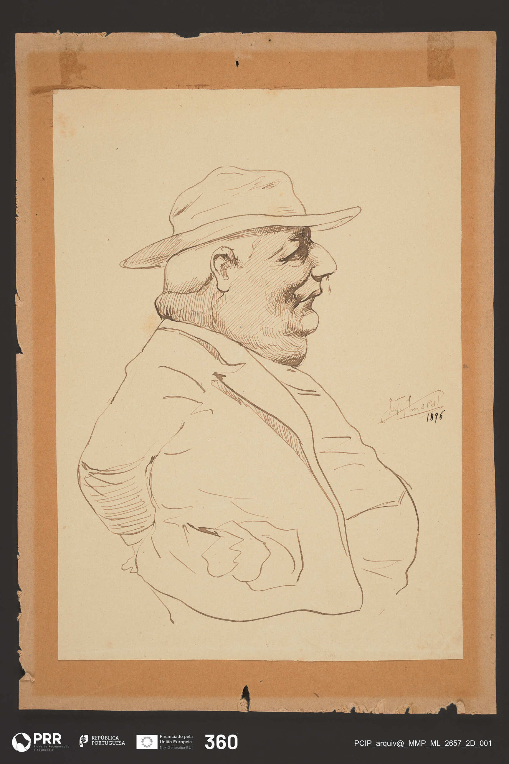 Matéria/Técnica: Desenho à pena.; Cronologia: 1896; Autoria: Amaral, João (1874 - 1955); Dimensões (cm): Altura: 25,1 x Largura: 18.
