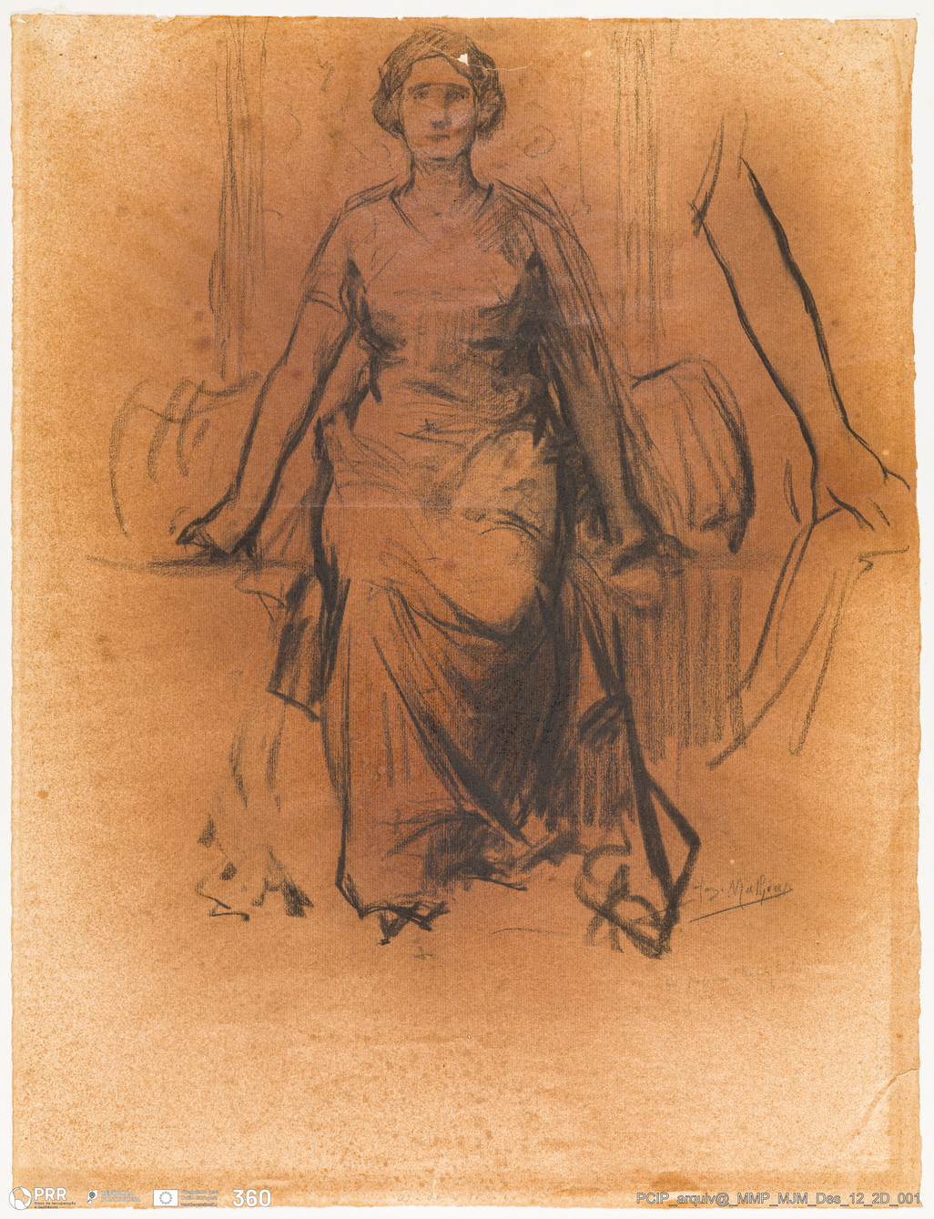 Matéria/Técnica: Carvão sobre papel; Cronologia: Desconhecida; Autoria: José Malhoa; Dimensões: 74 x 59 cm.