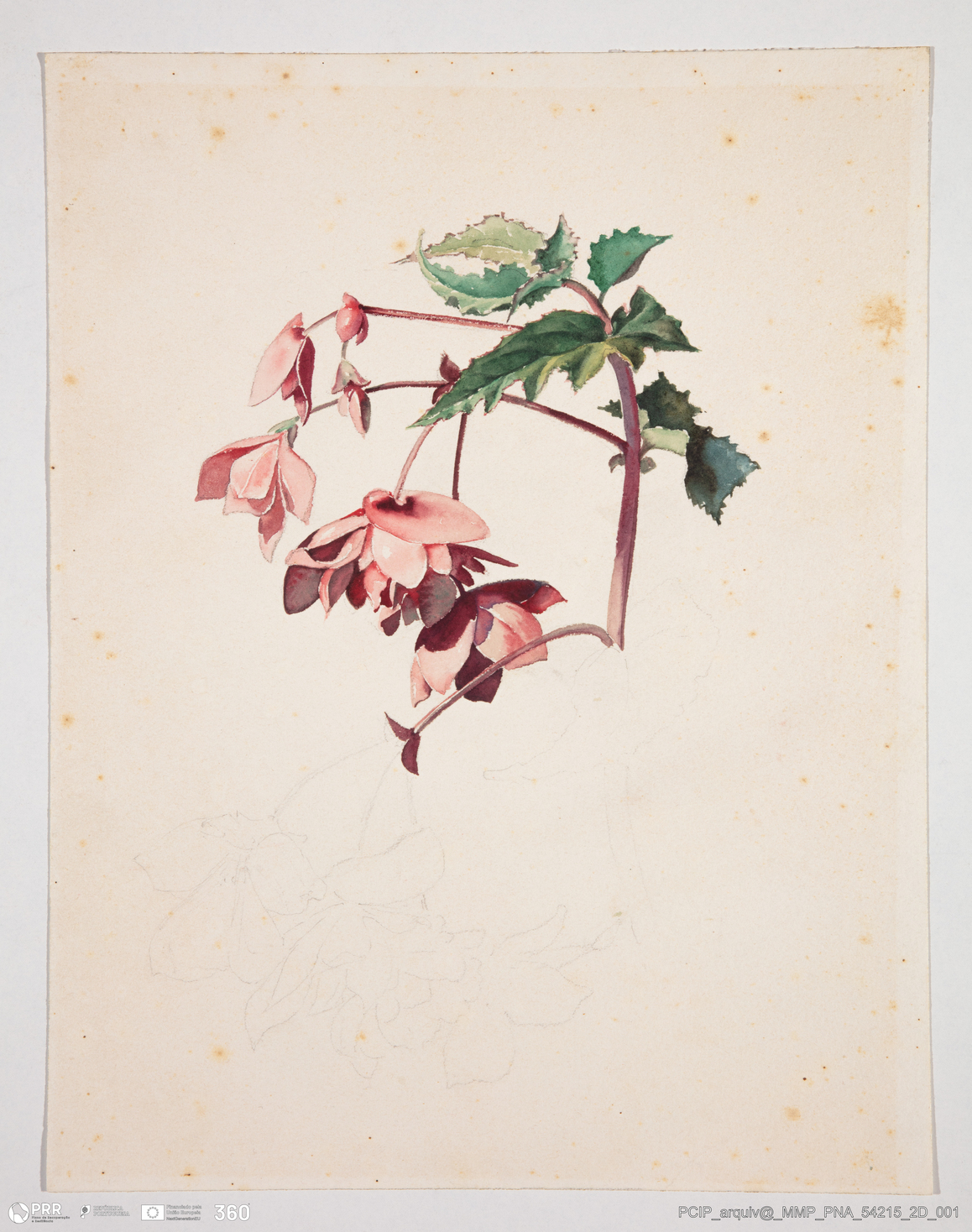 Matéria/Técnica: Aguarela; Cronologia: 1892; Autoria: D. Maria Pia; Dimensões: Altura: 29,3 cm x Largura: 22,5 cm.