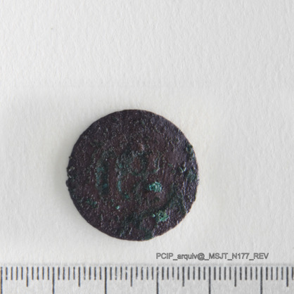 - Matéria/Técnica: Cu - Cobre; Cronologia: Século XVII; Reinado de D. João IV (1640 - 1656); Ano de emissão: Desconhecido; Centro emissor: Desconhecido; Dimensões (mm): 25,58; Peso (g): 3,56.