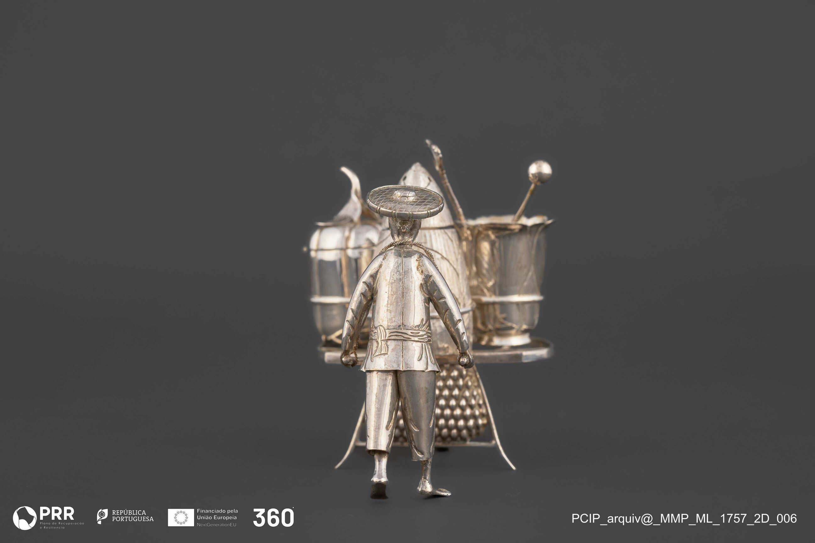 Matéria/Técnica: Prata fundida, cinzelada, relevada, incisa e dourada.; Cronologia: 1846-1905; Autoria: H W (desconhecido); Dimensões (cm): Comprimento: 14,5.