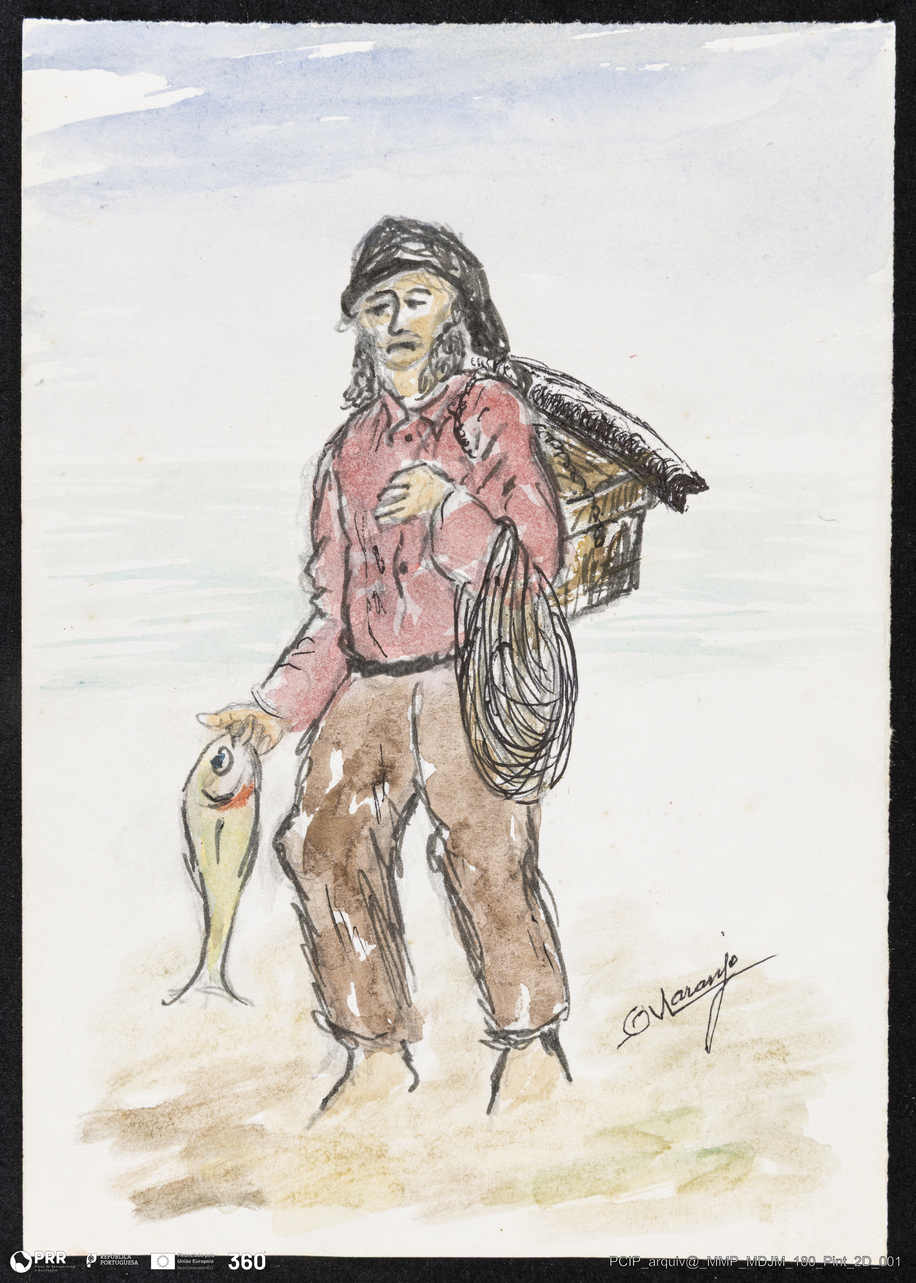 Matéria/Técnica: Aguarela e lápis sobre papel; Cronologia: Séc. XX; Autoria: António Vitorino Laranjo; Dimensões: Altura: 22 cm x Largura: 15 cm.